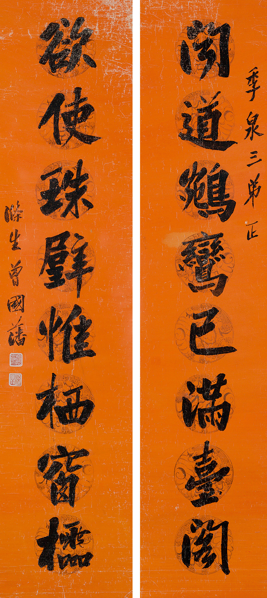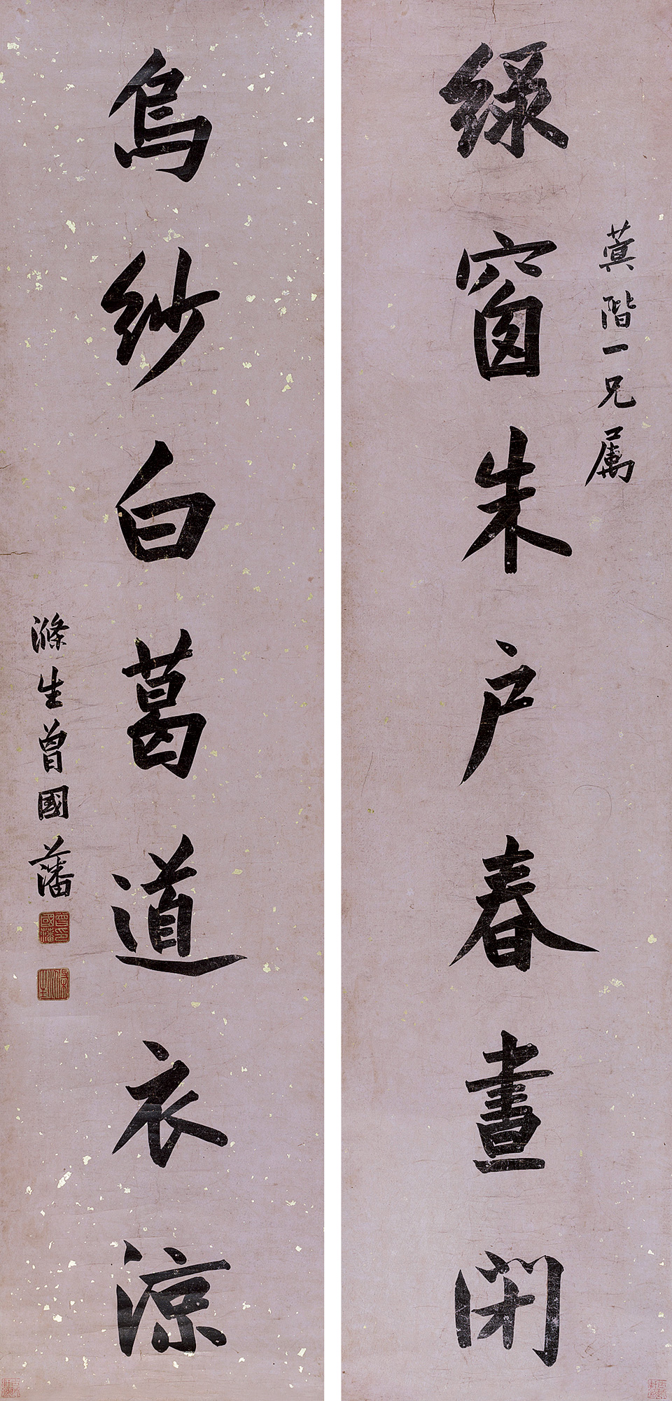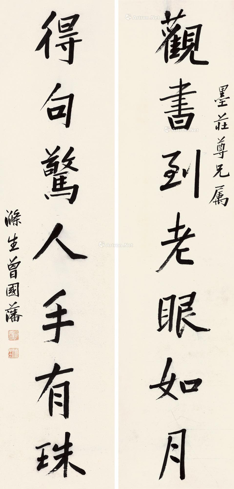 楷书八言联(二件) 立轴 水墨腊笺 |