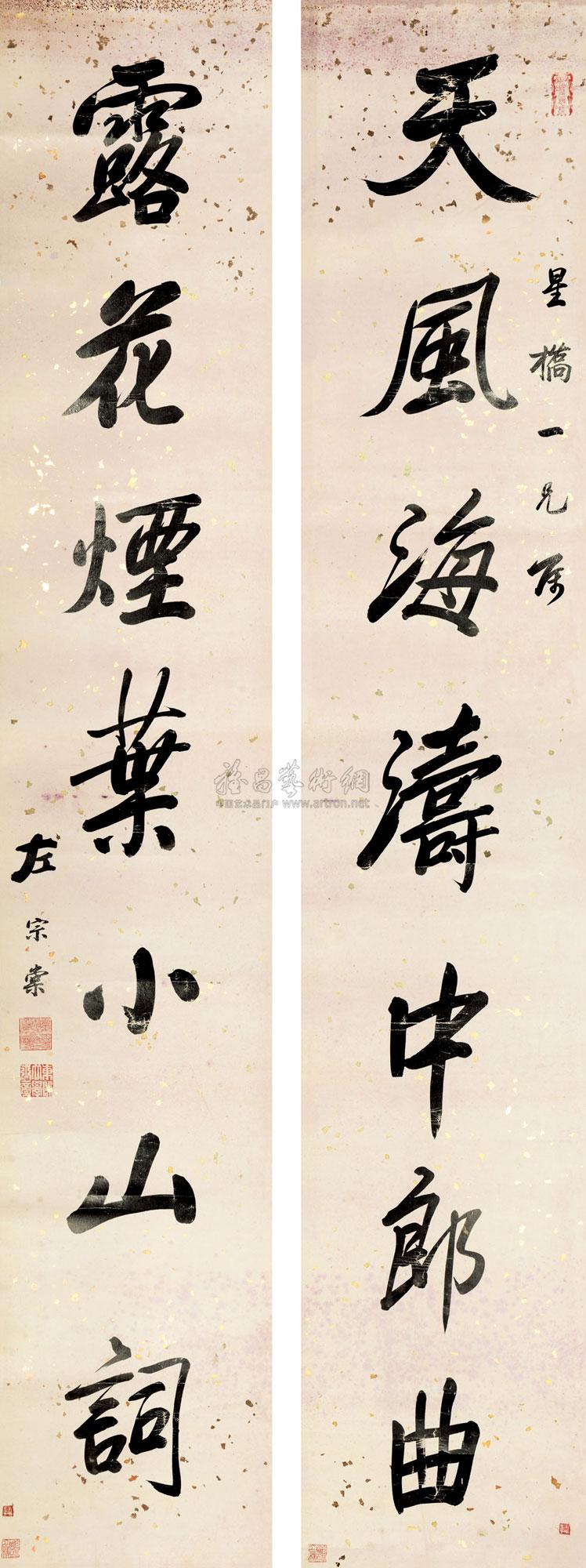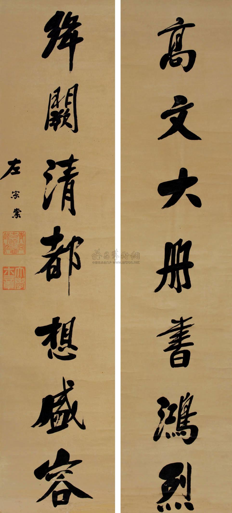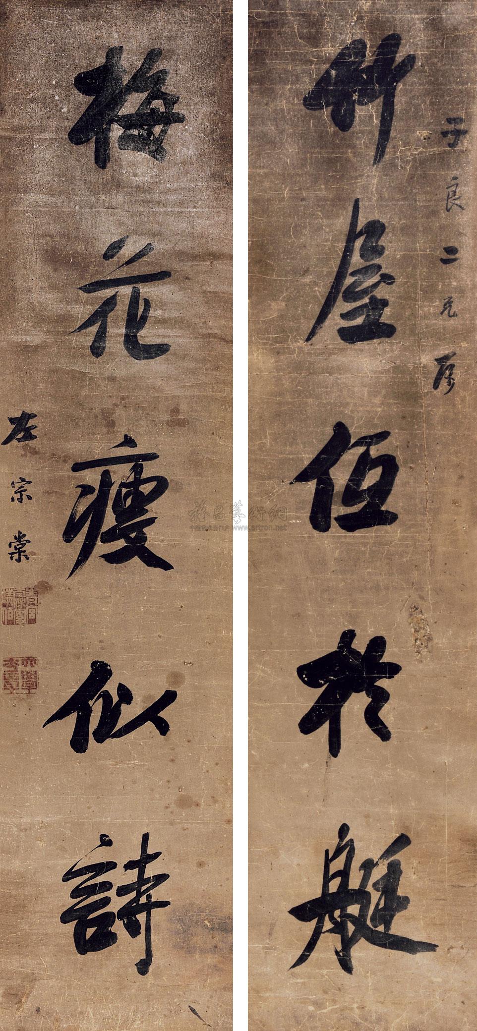 书法对联 (两幅) 立轴 水墨蜡笺 |