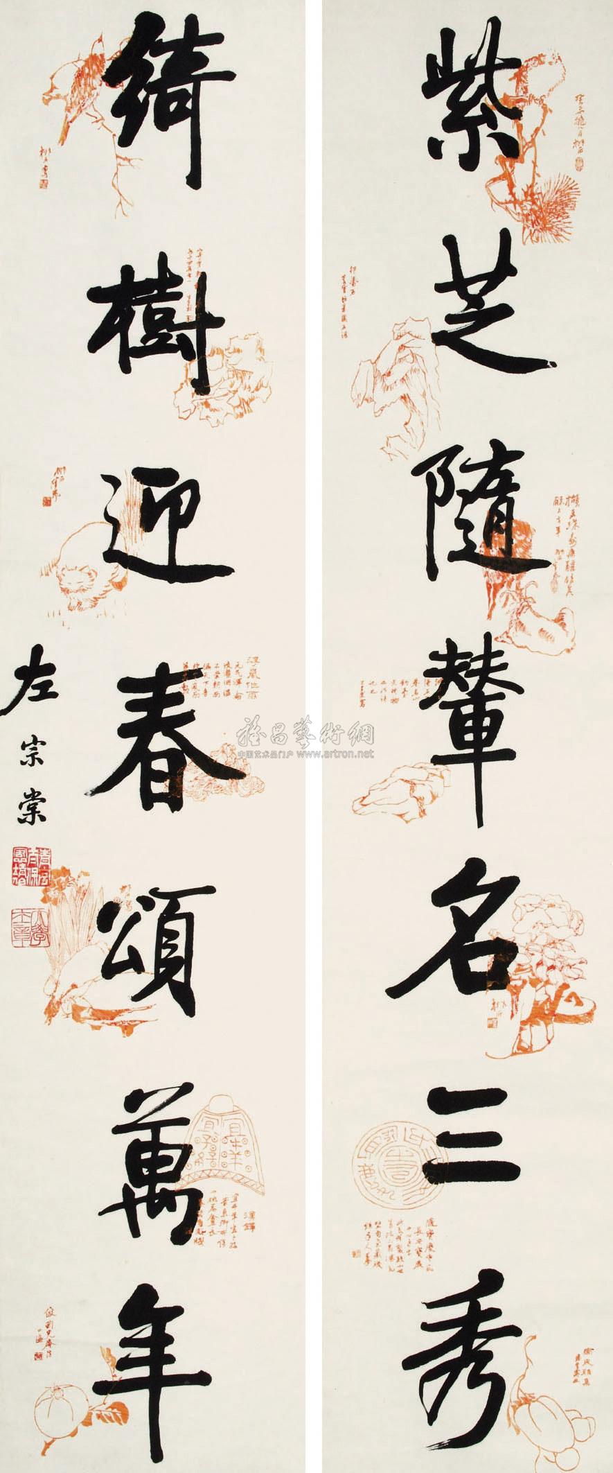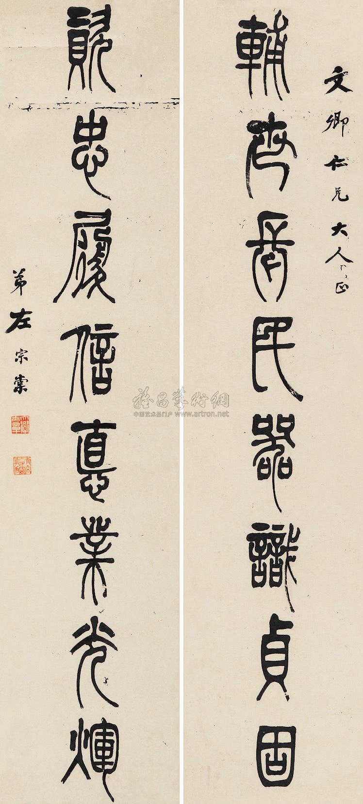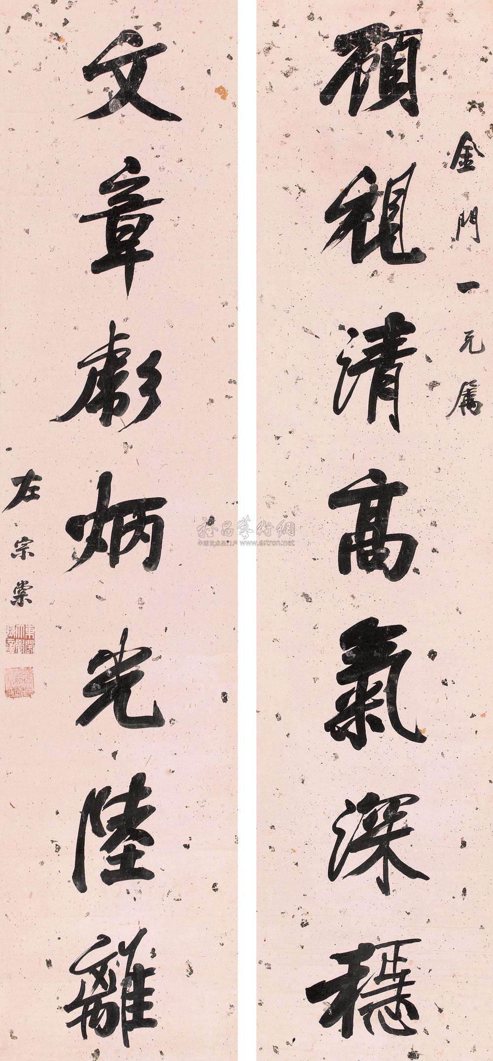 书法对联 (两幅) 立轴 水墨蜡笺 |