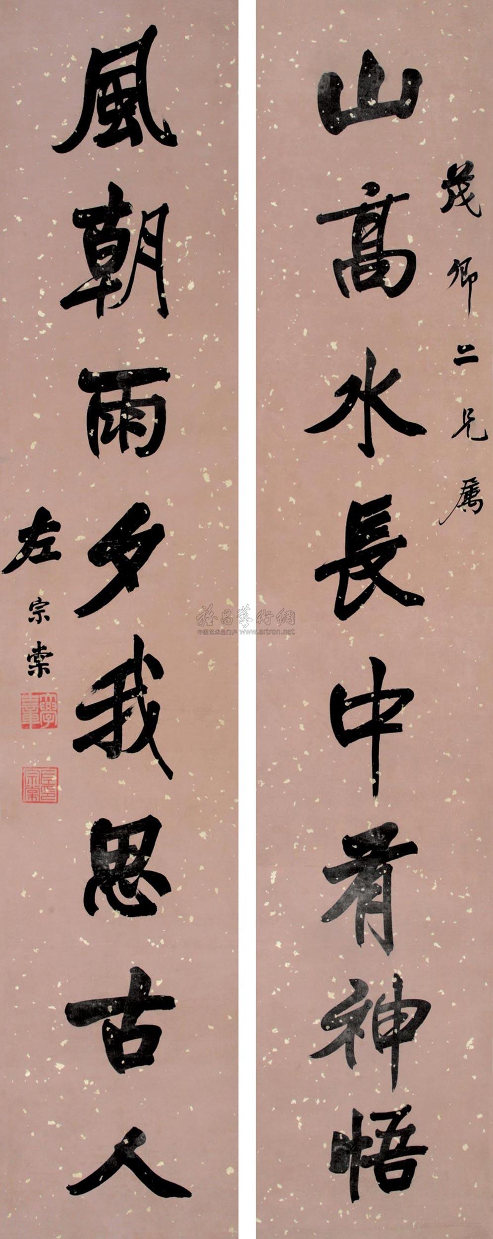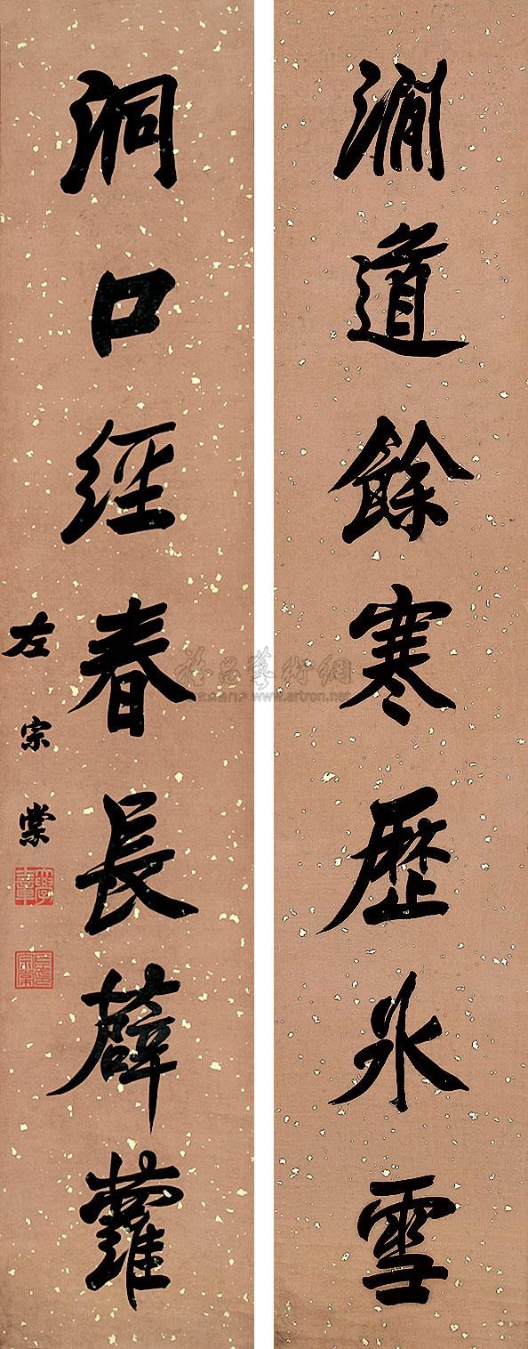 书法对联 立轴 水墨泥金 |
