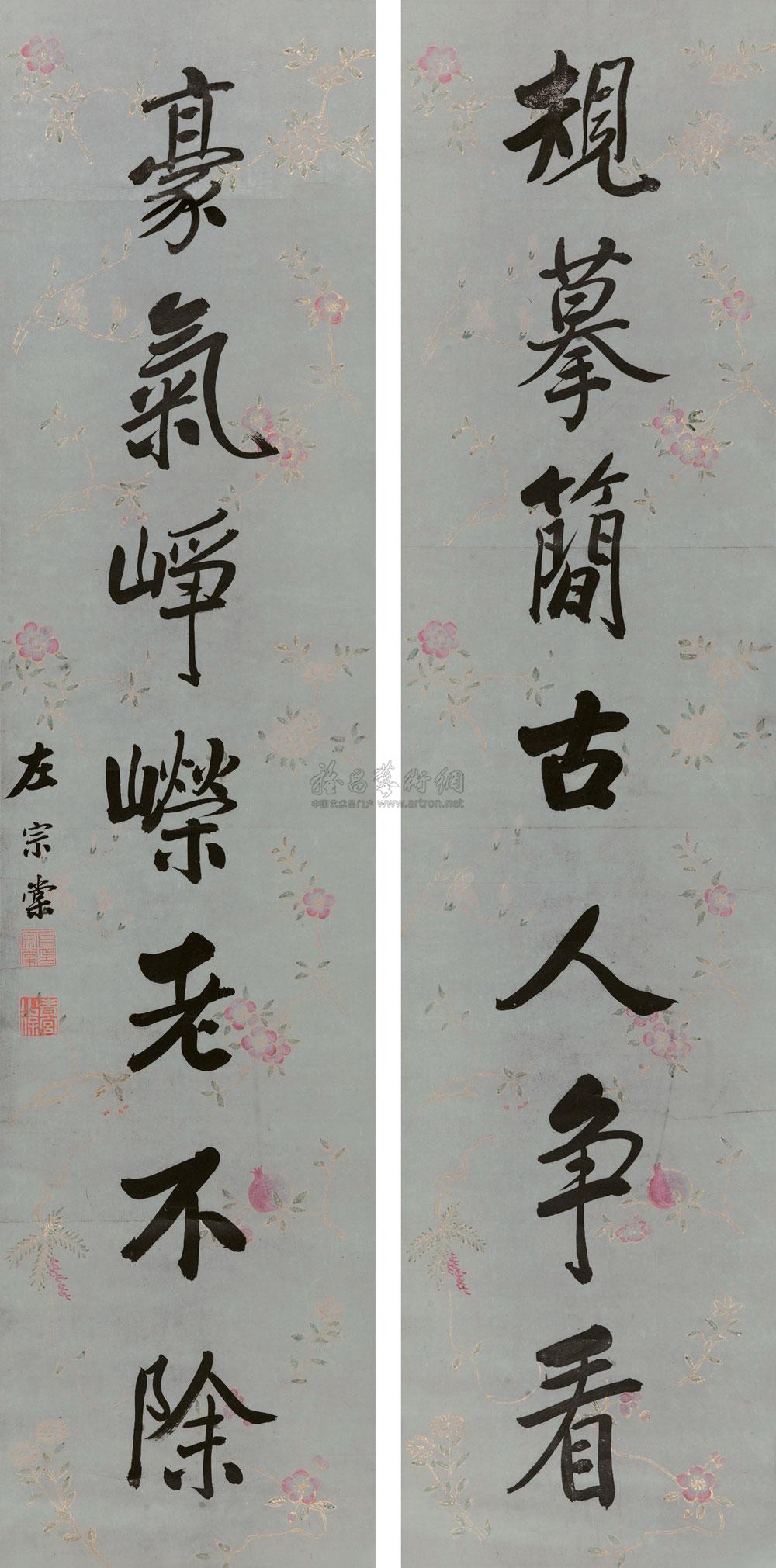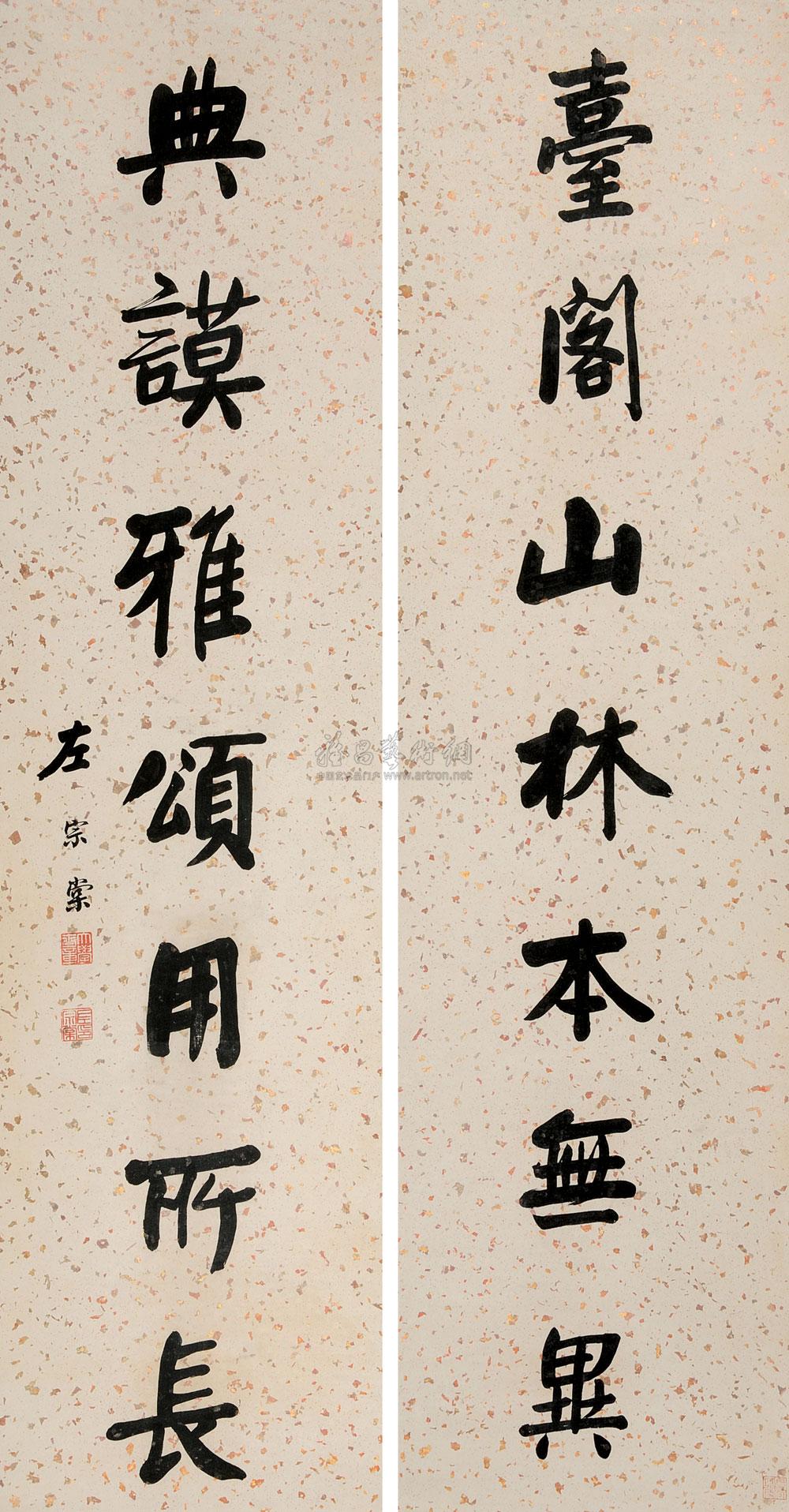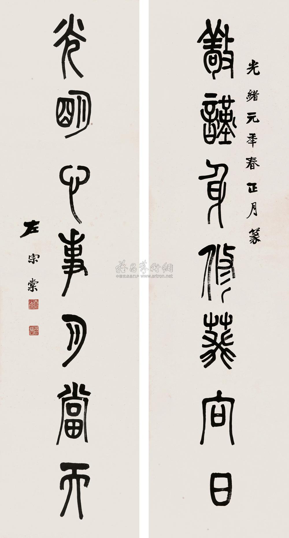 篆书七言联 立轴 设色纸本 |