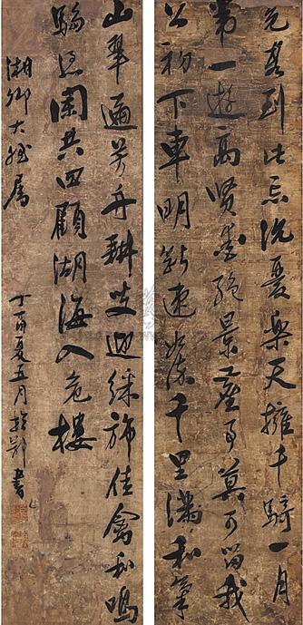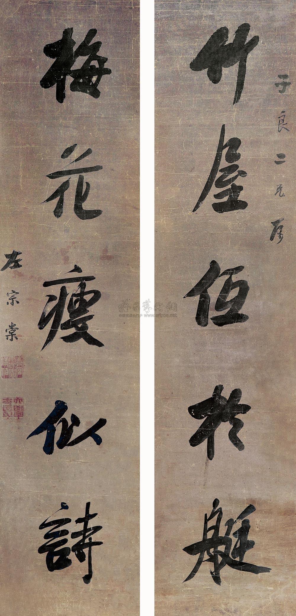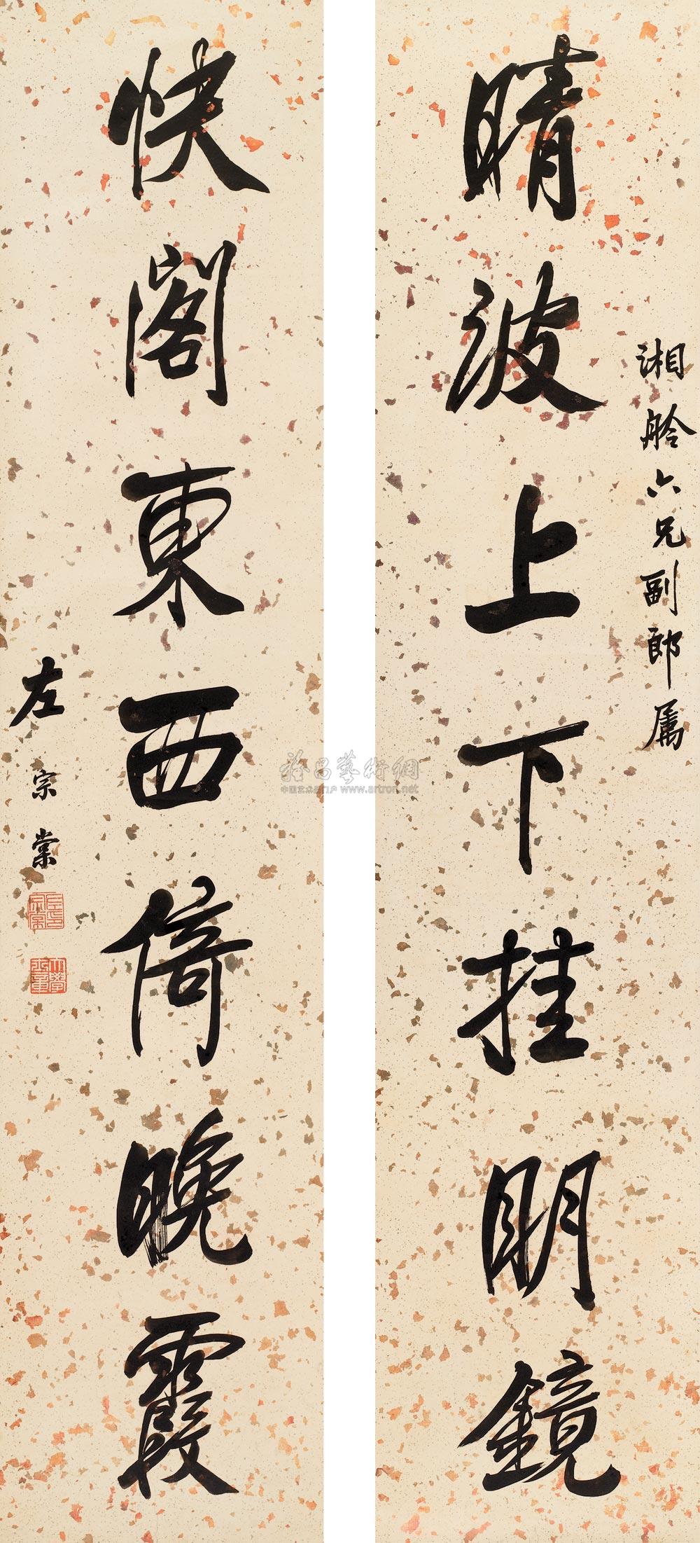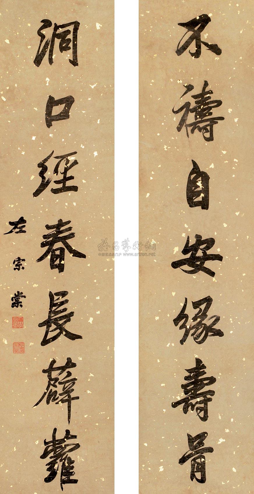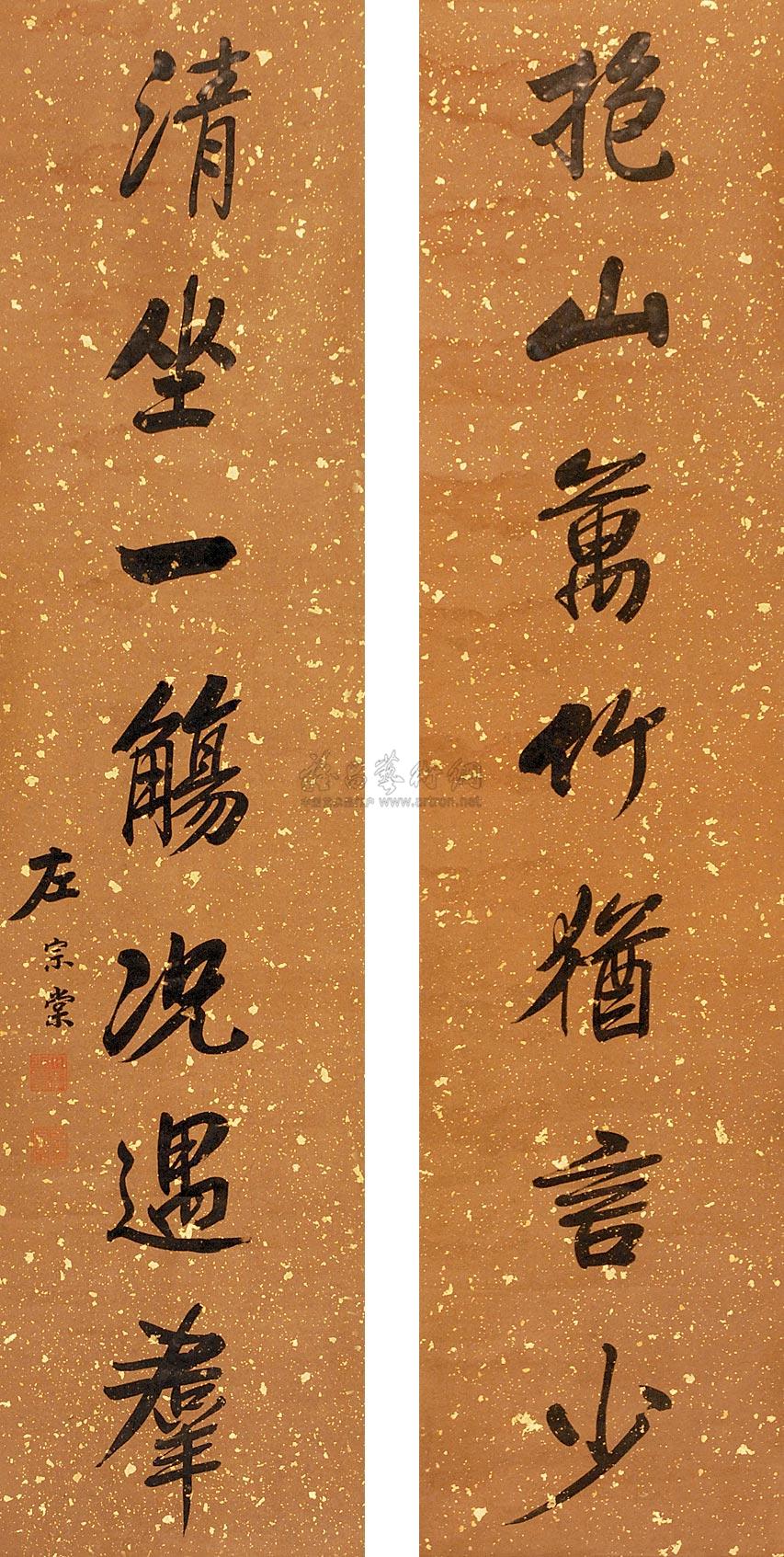 行书《古籁遗音七言联》 立轴对联 洒金纸本 |
