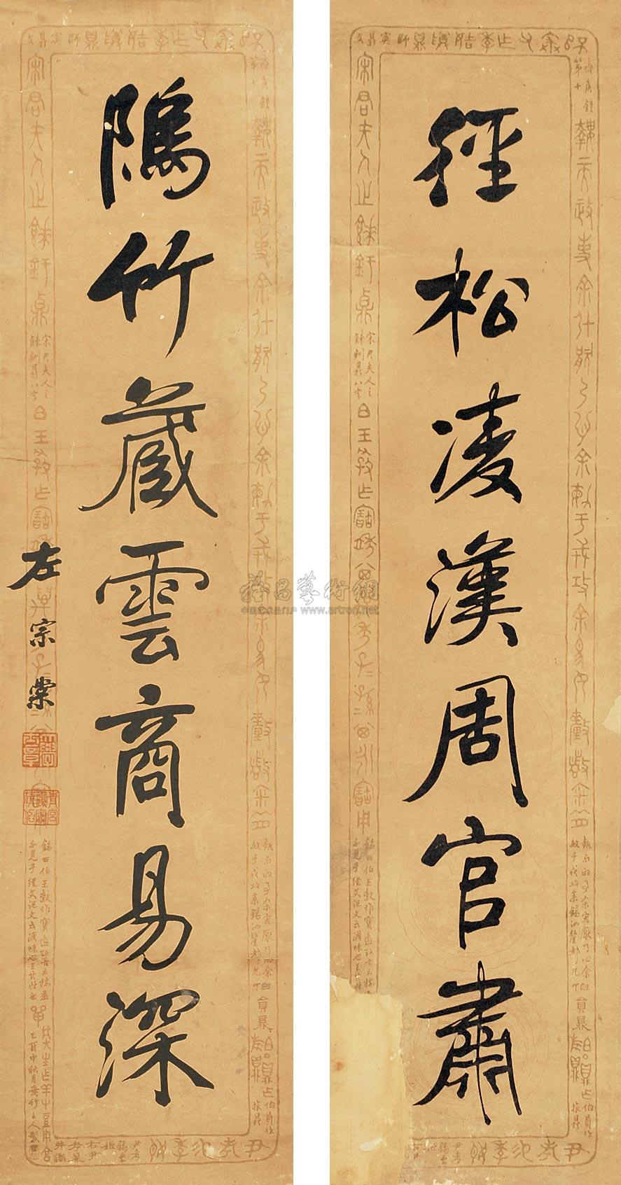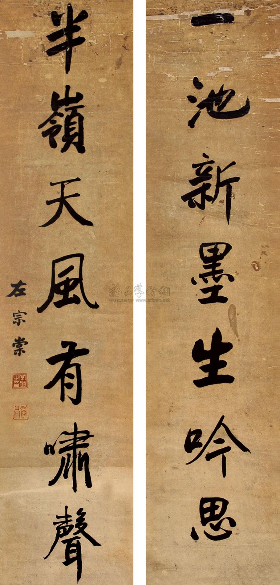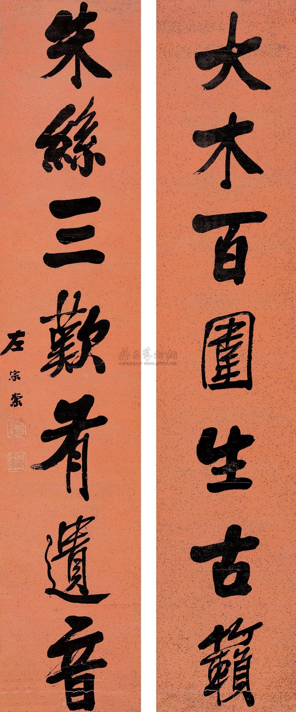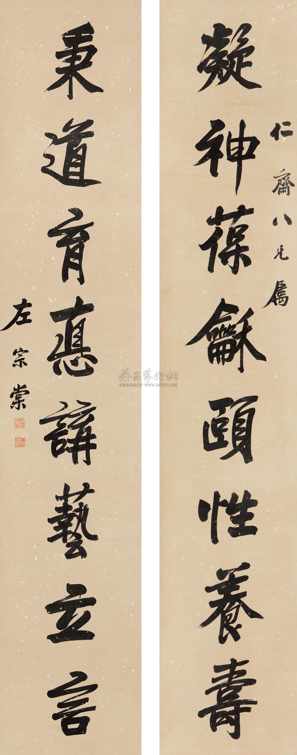行书《古籁遗音七言联》 立轴对联 洒金纸本 |