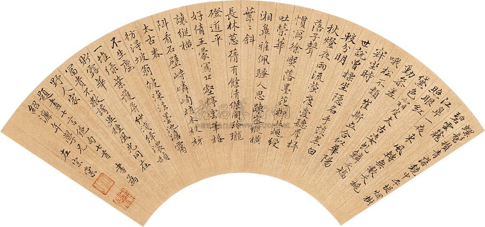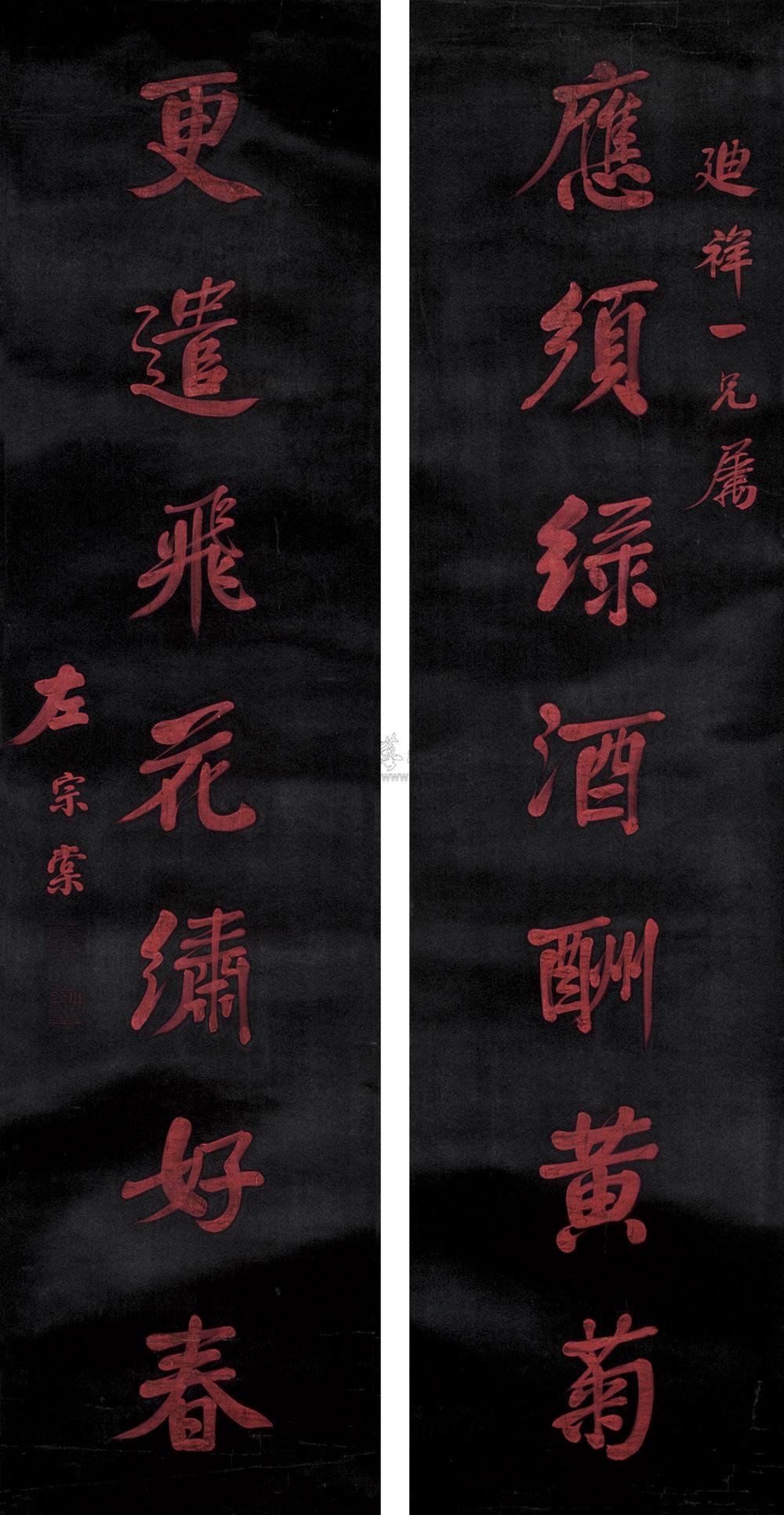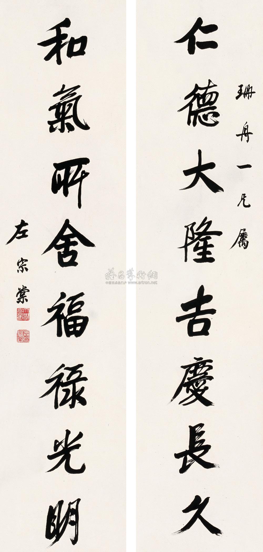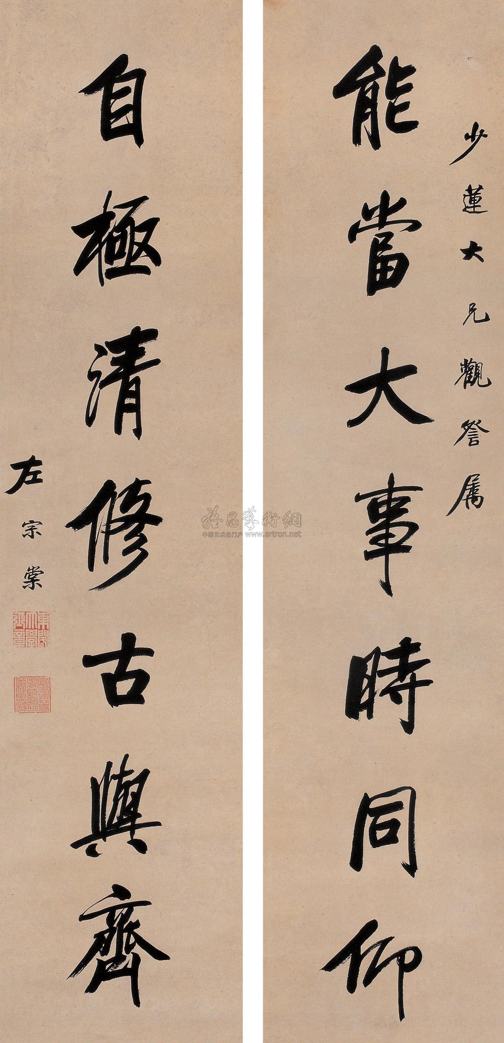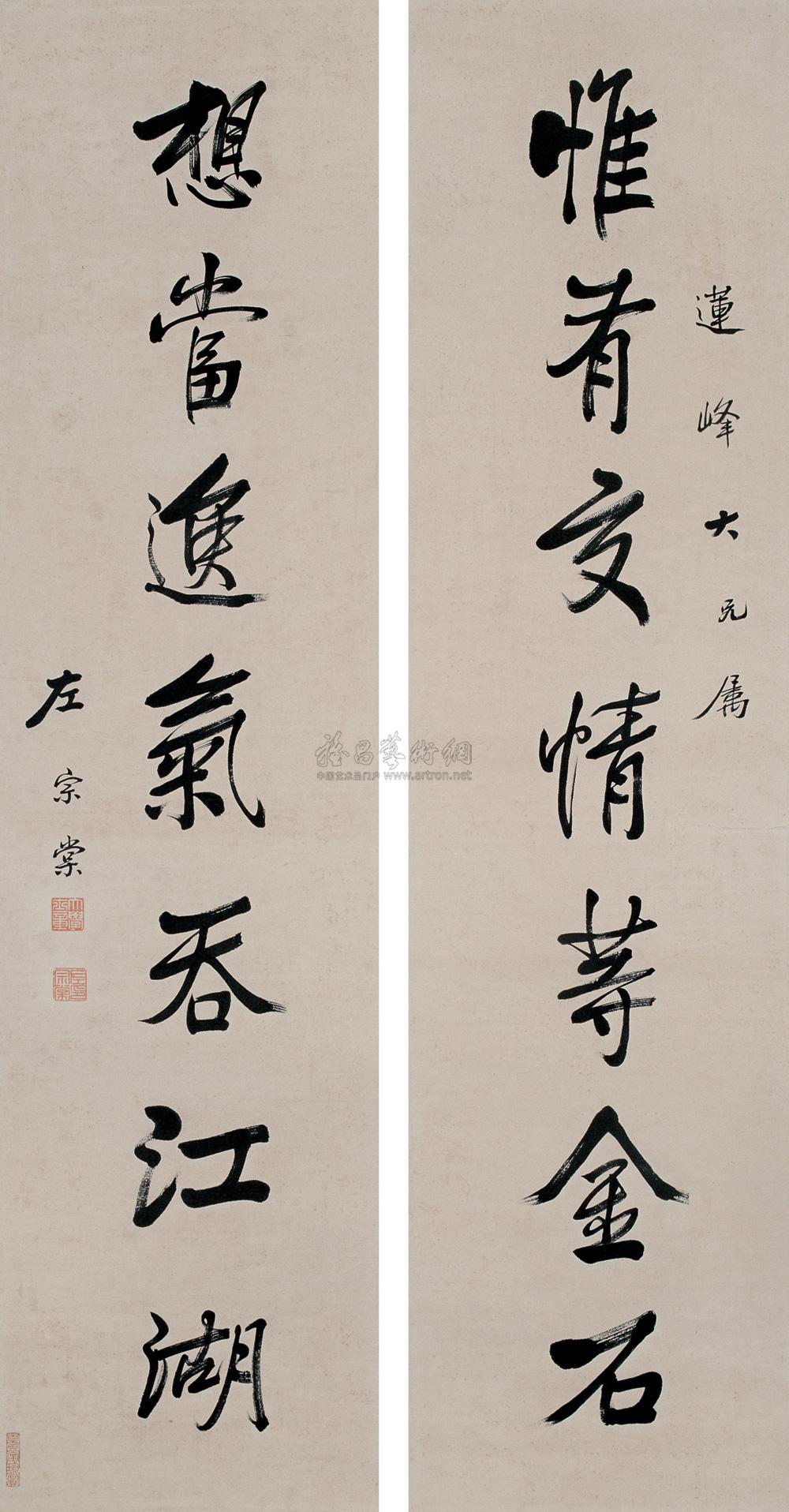 行书《古籁遗音七言联》 立轴对联 洒金纸本 |
