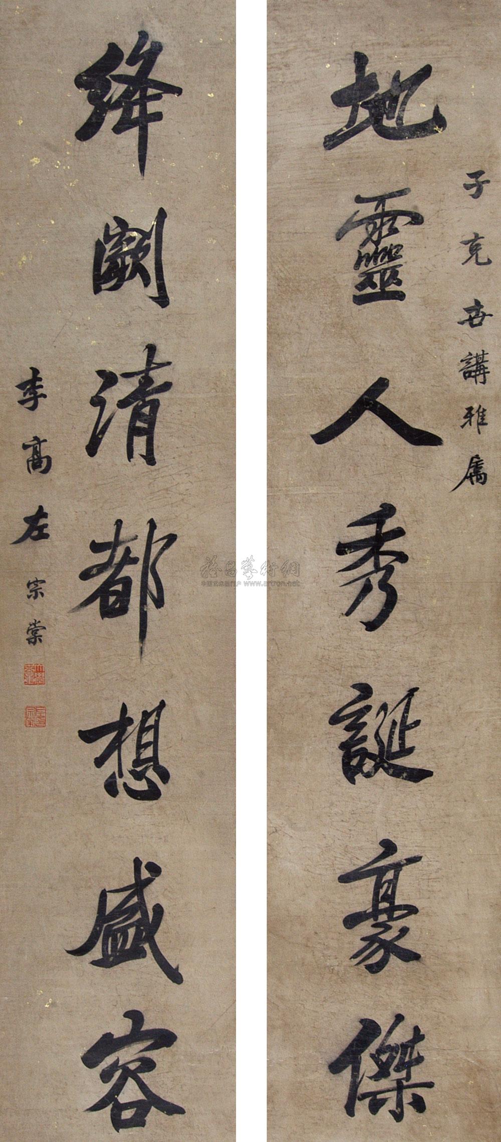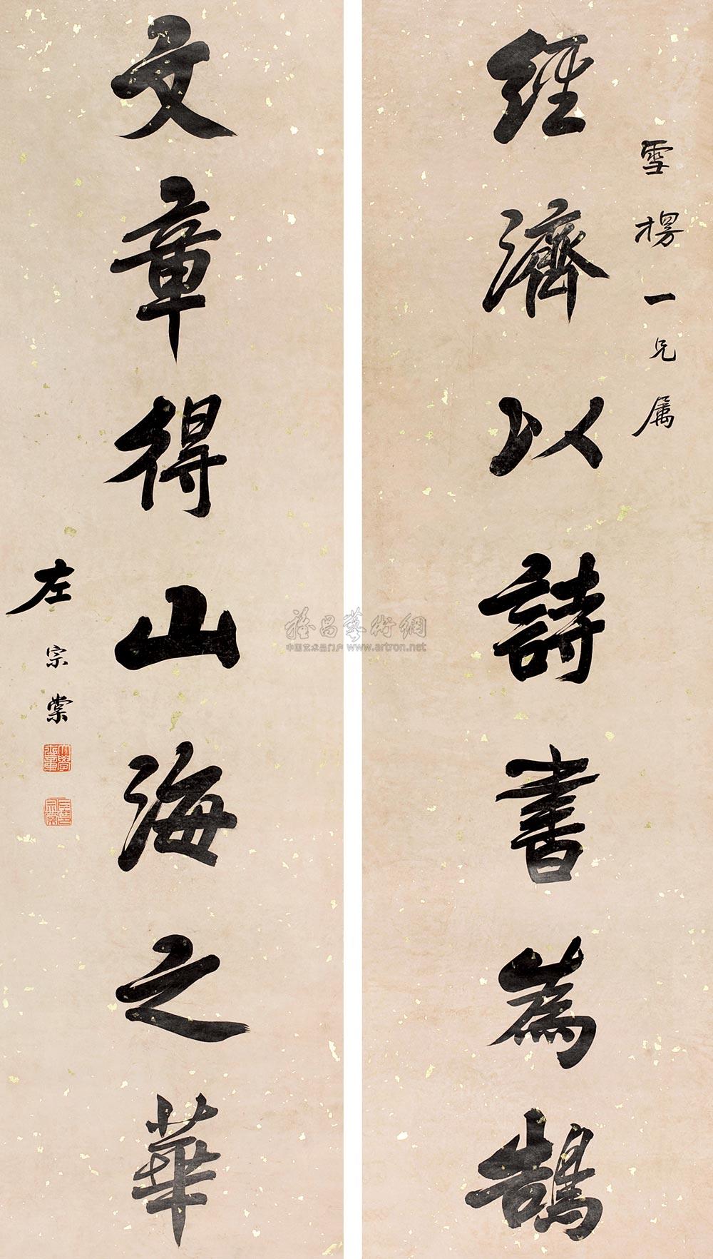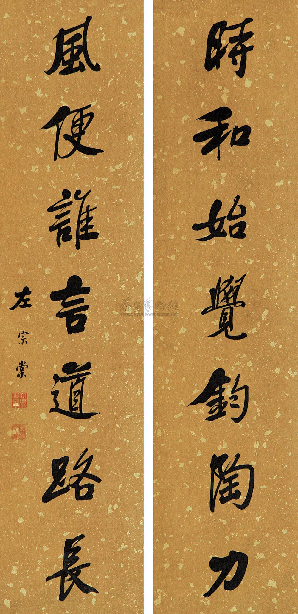 行书七言联 立轴 洒金绢本 |