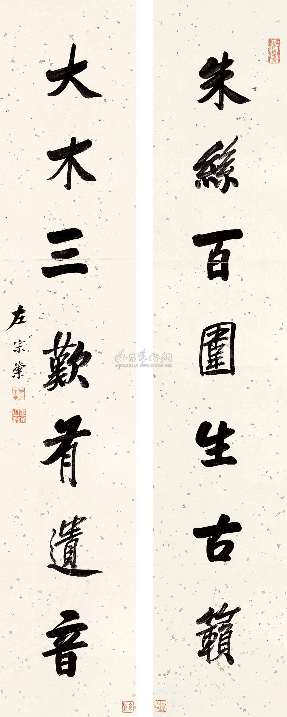 七言诗联 (两幅) 立轴 水墨洒金笺 |