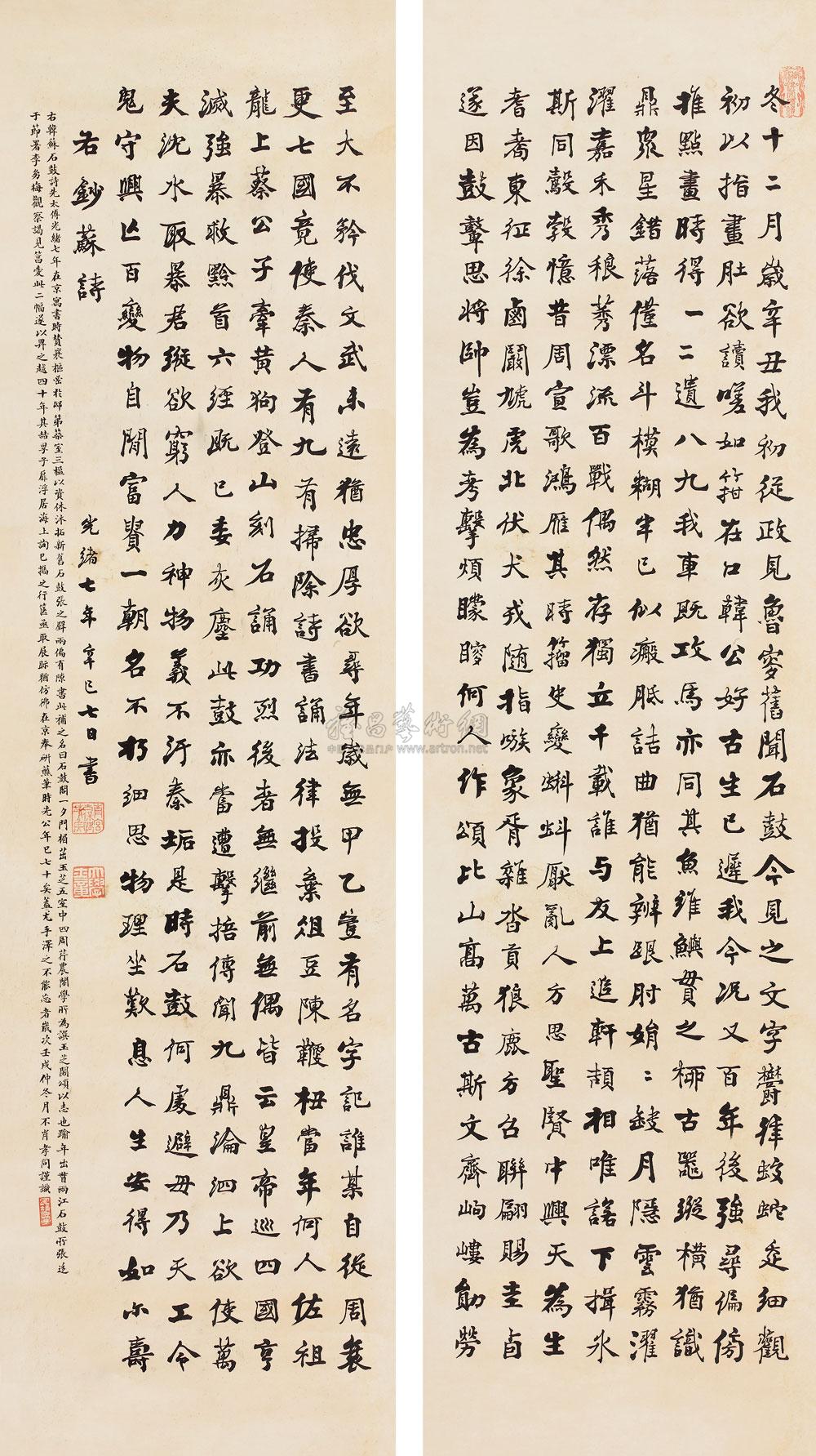 行书石鼓诗 立轴 纸本 |