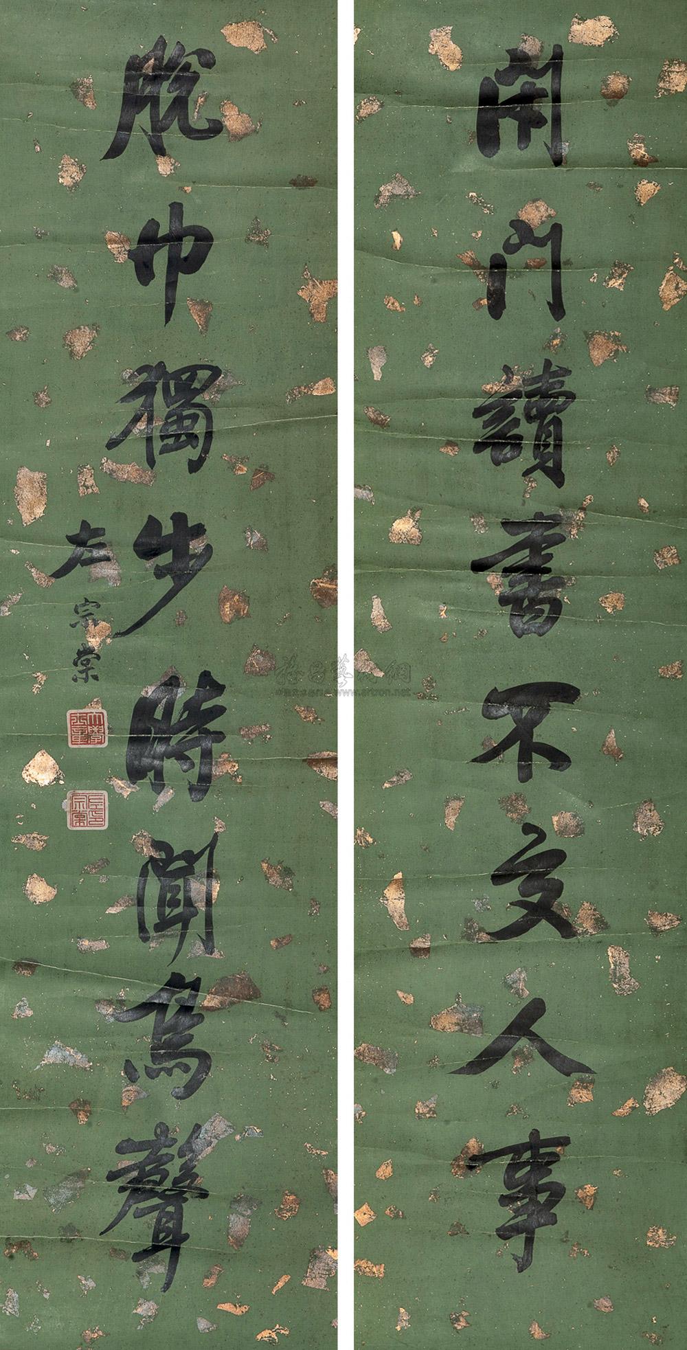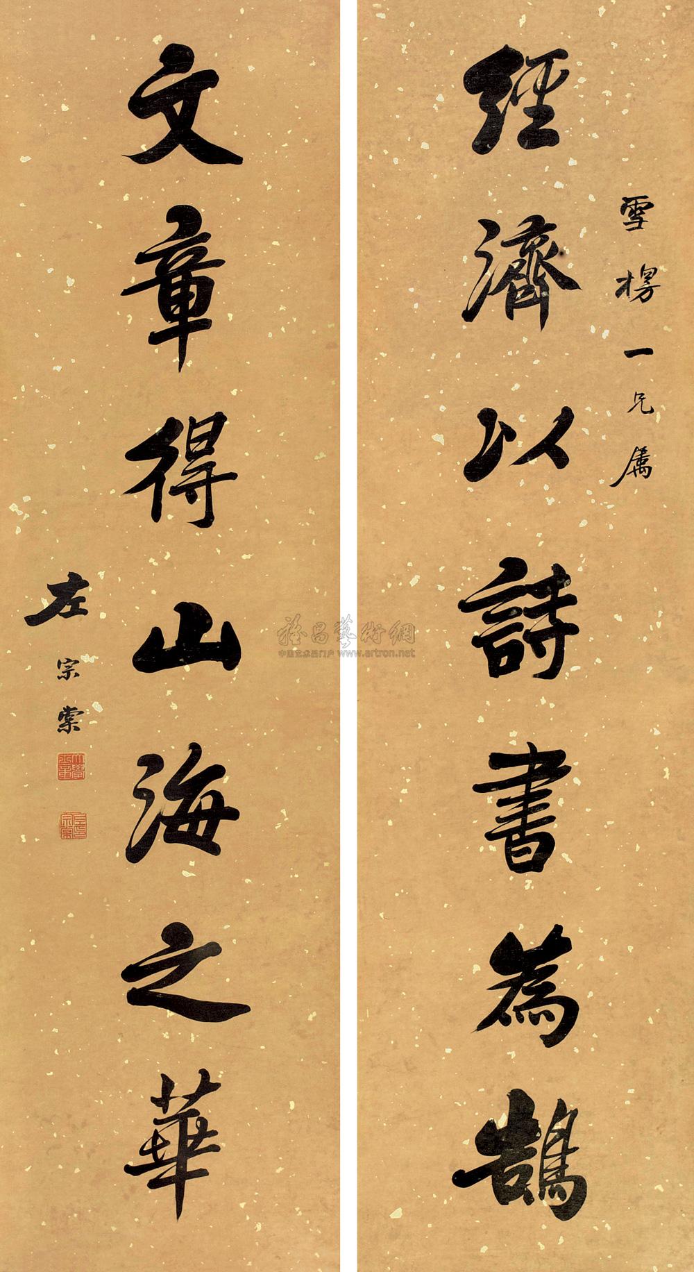 书法对联 立轴 洒金笺 |
