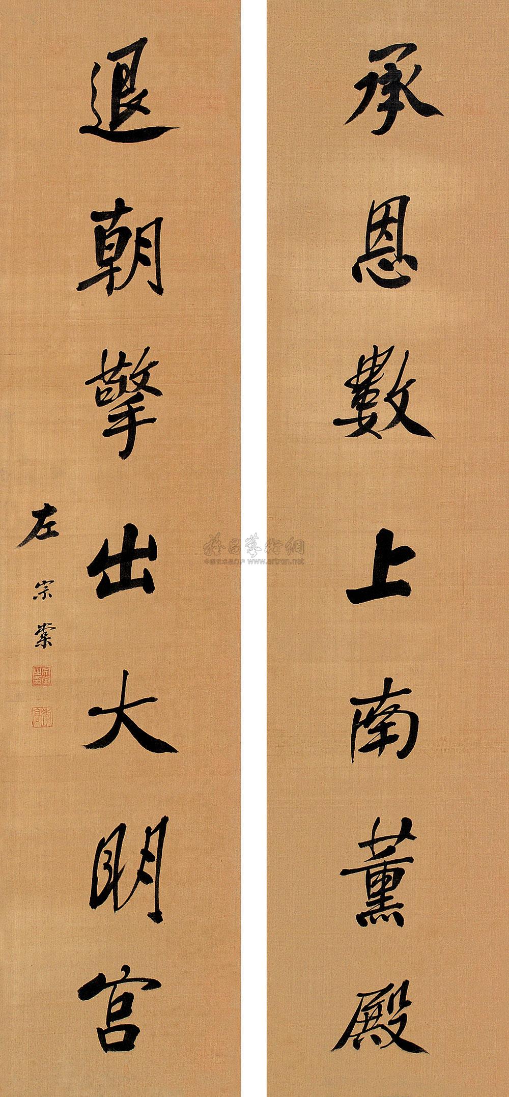 行书七言联 立轴 绢本 |