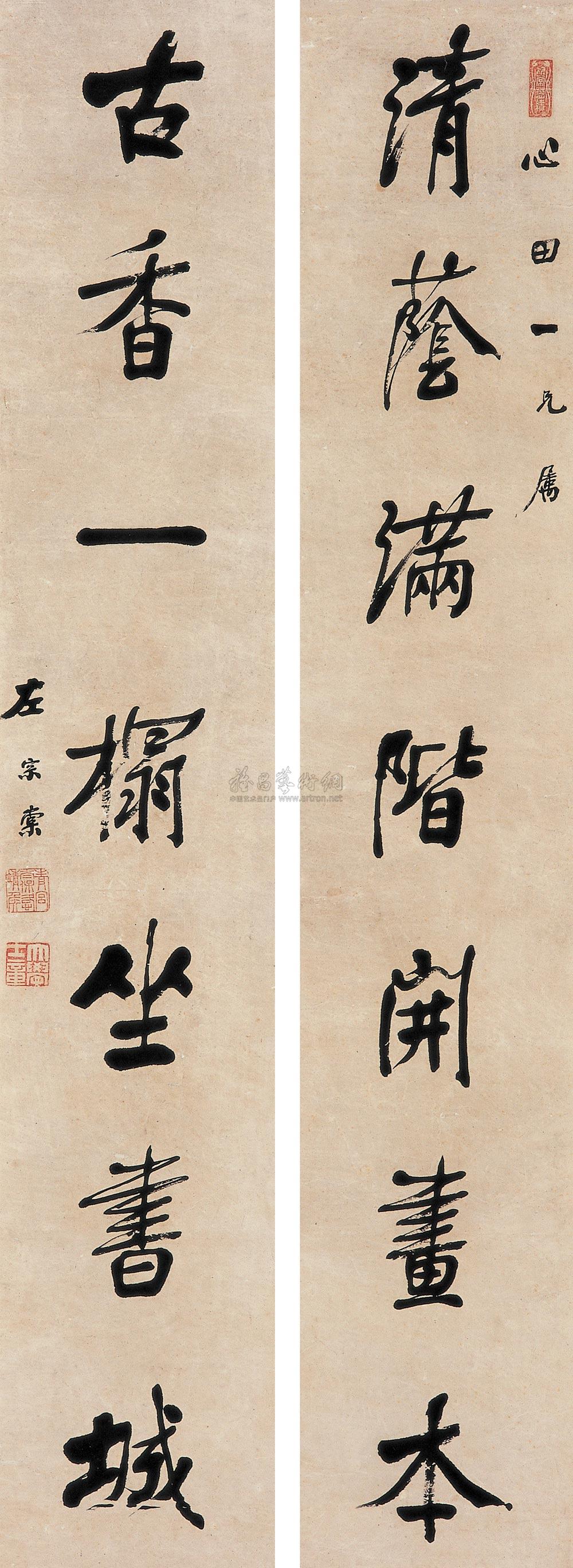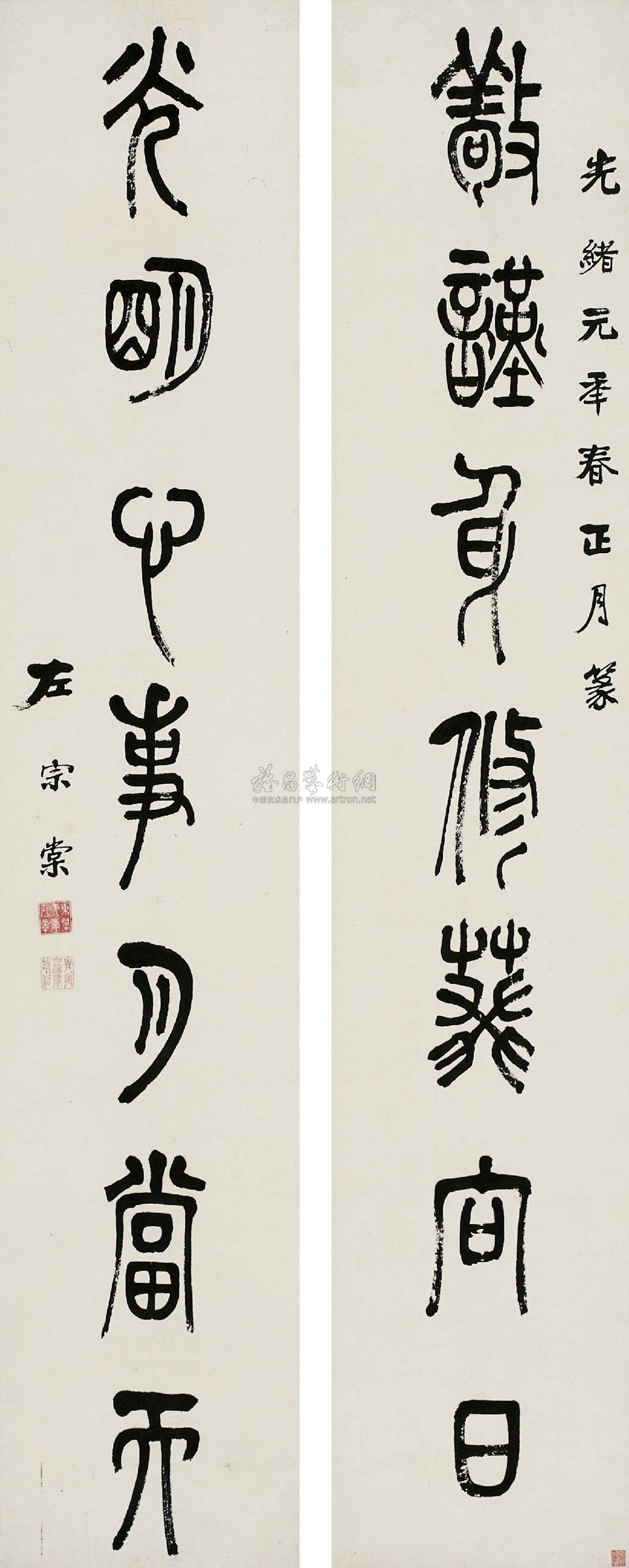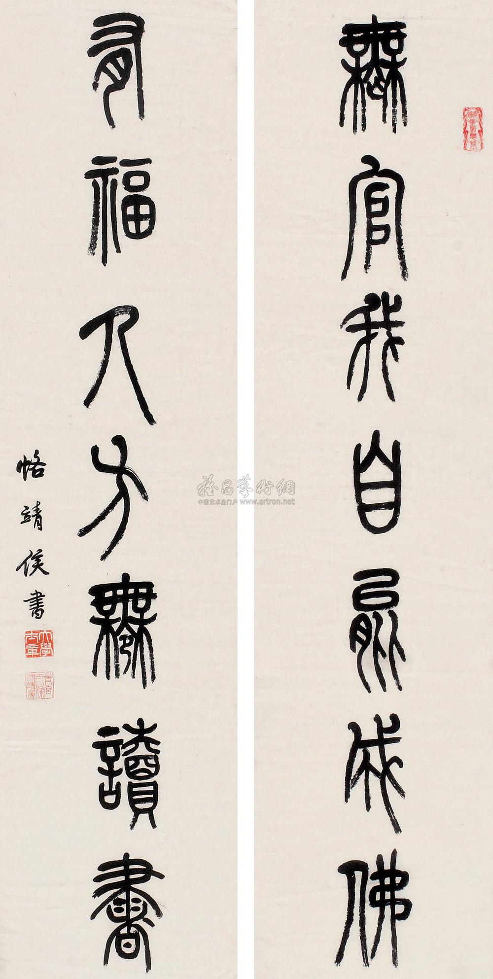 篆书七言联 立轴 纸本 |