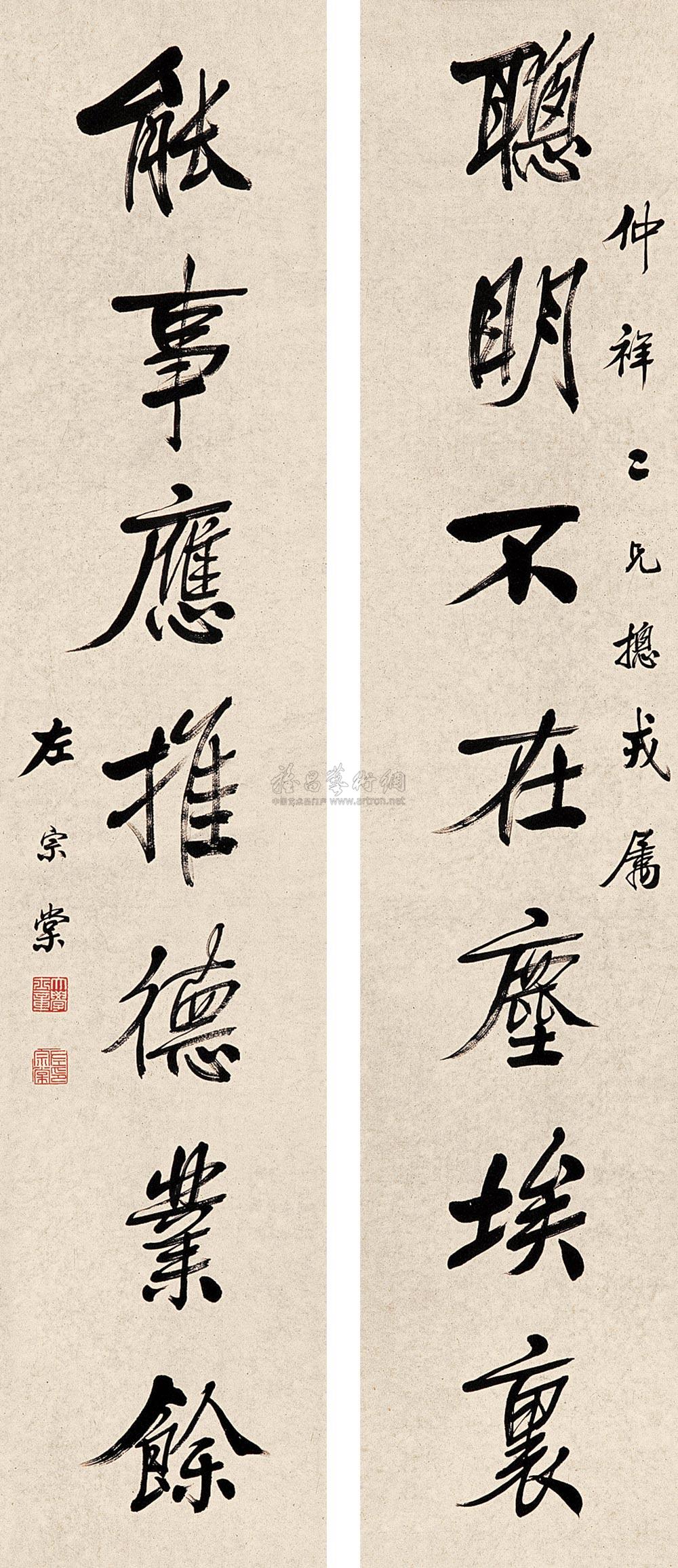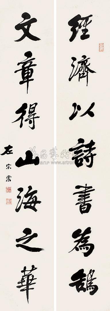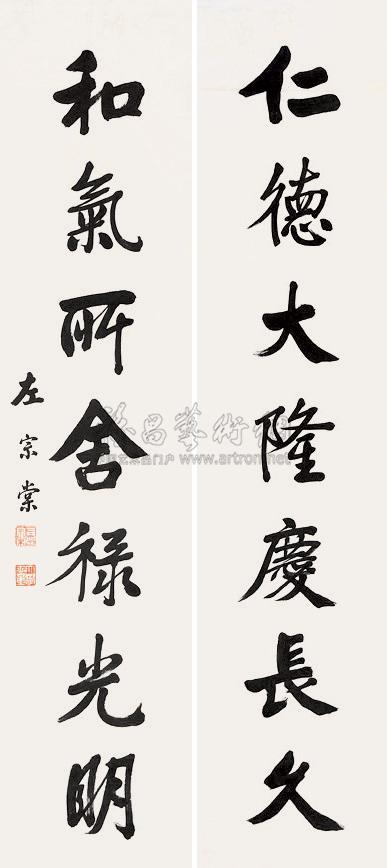 行书八言对联 立轴 水墨纸本 |