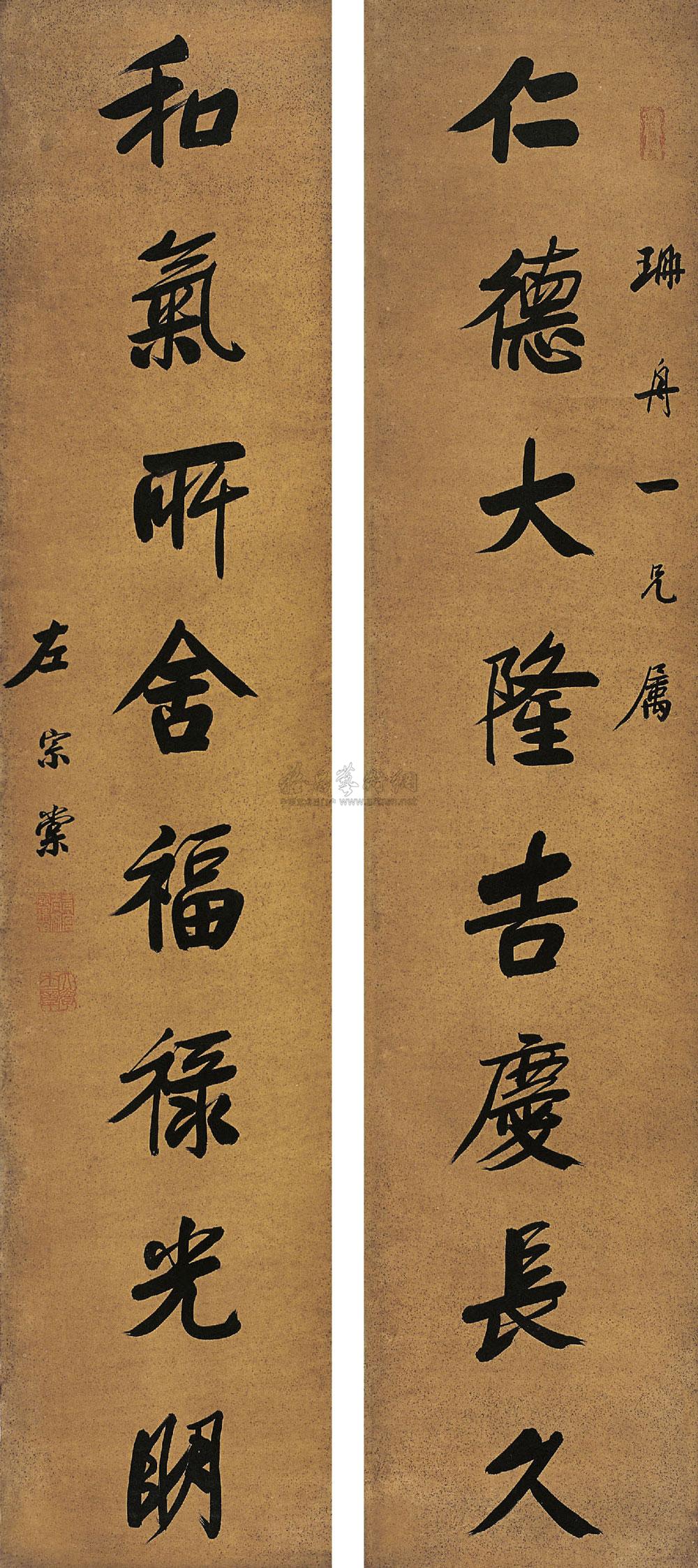 行书七言 对联 金笺 |