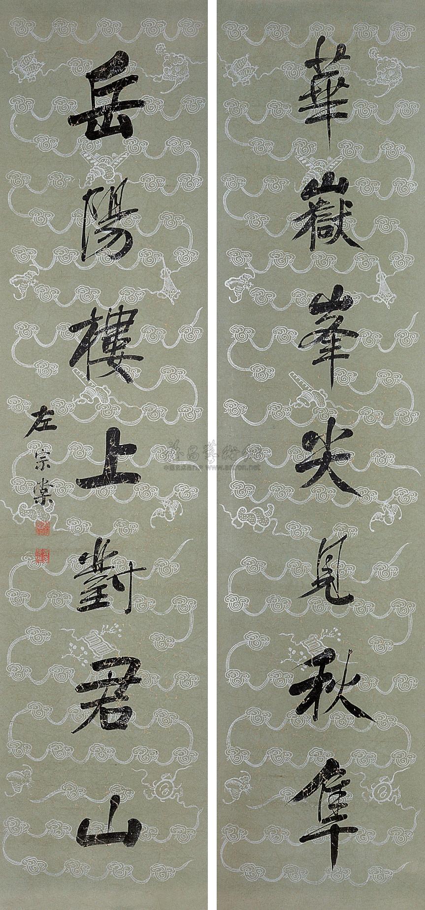 书法对联 立轴 水墨洒银笺本 |