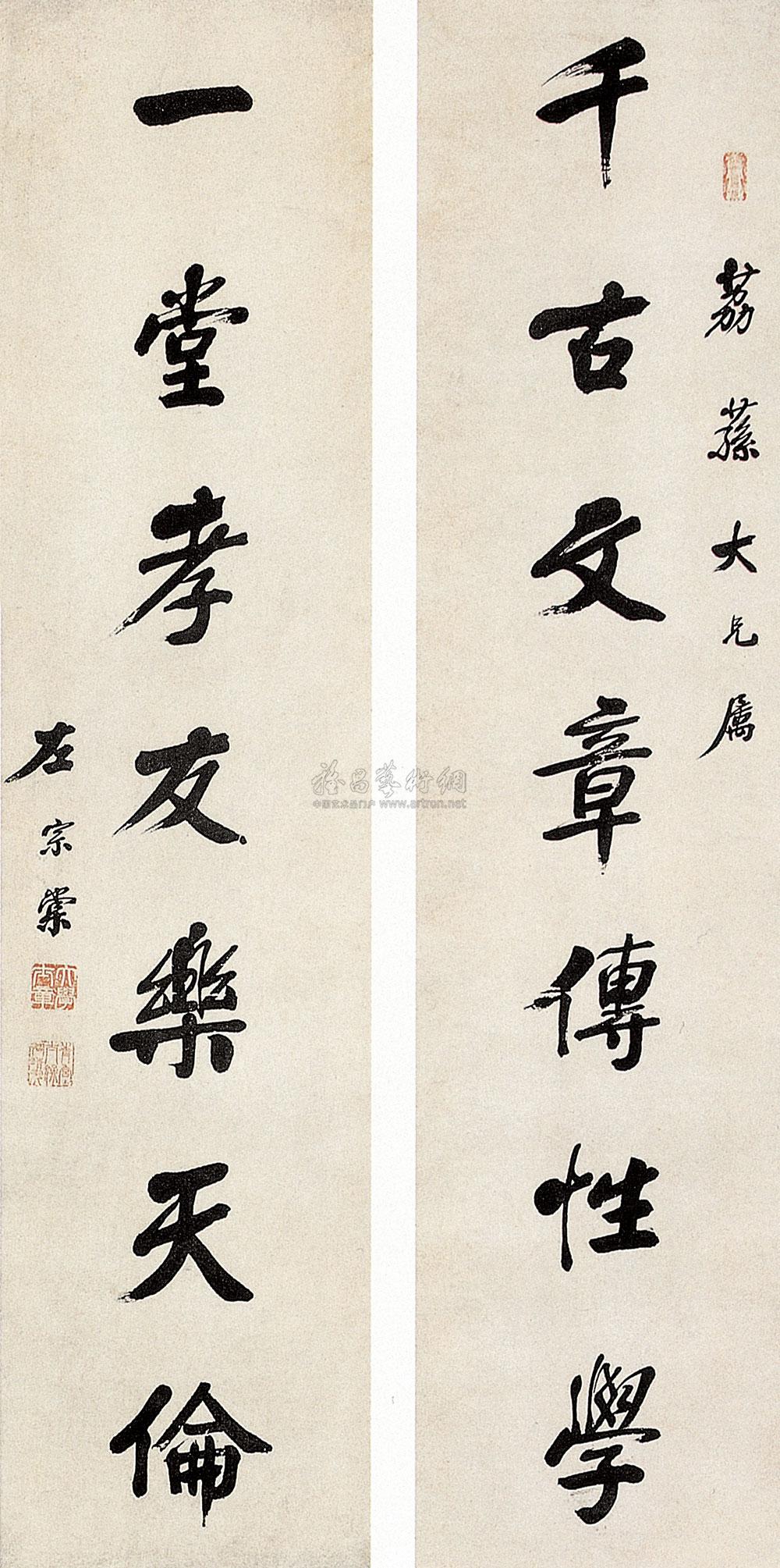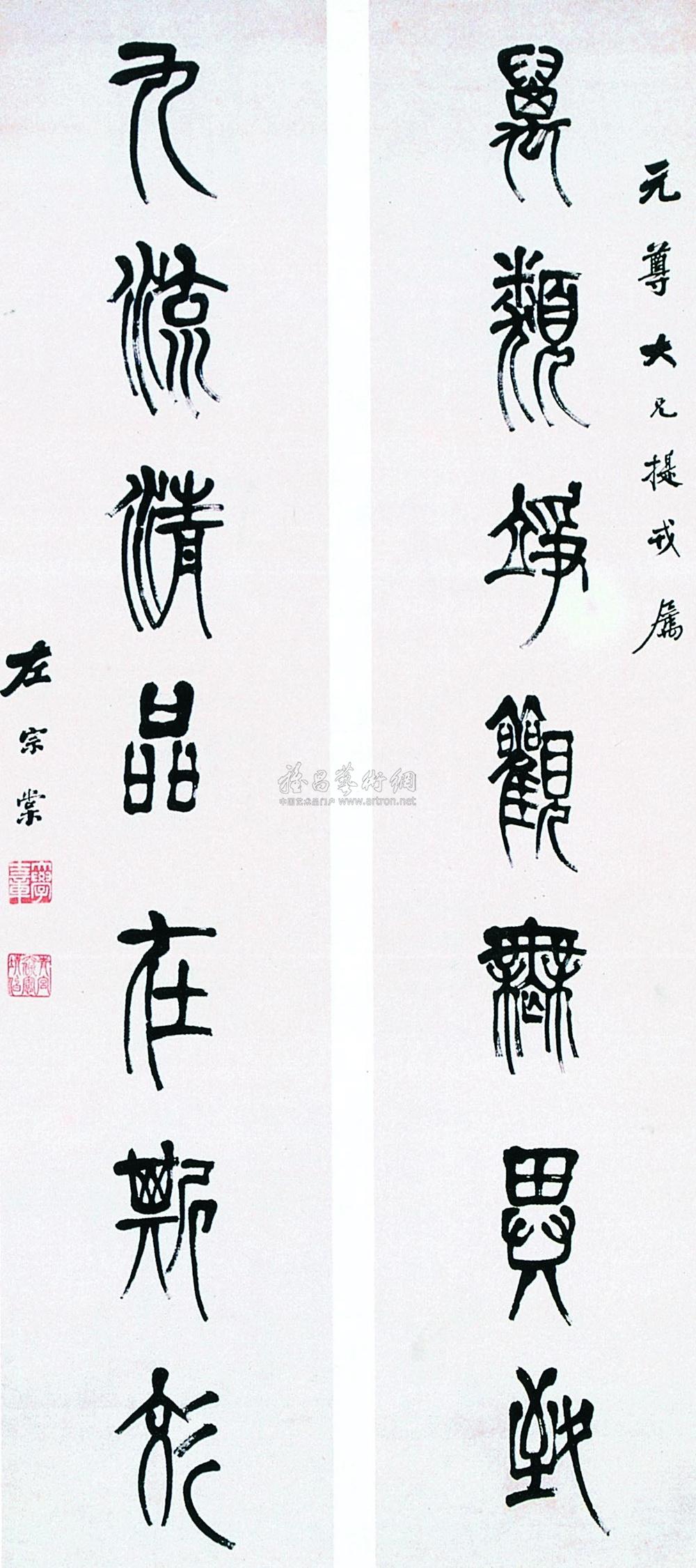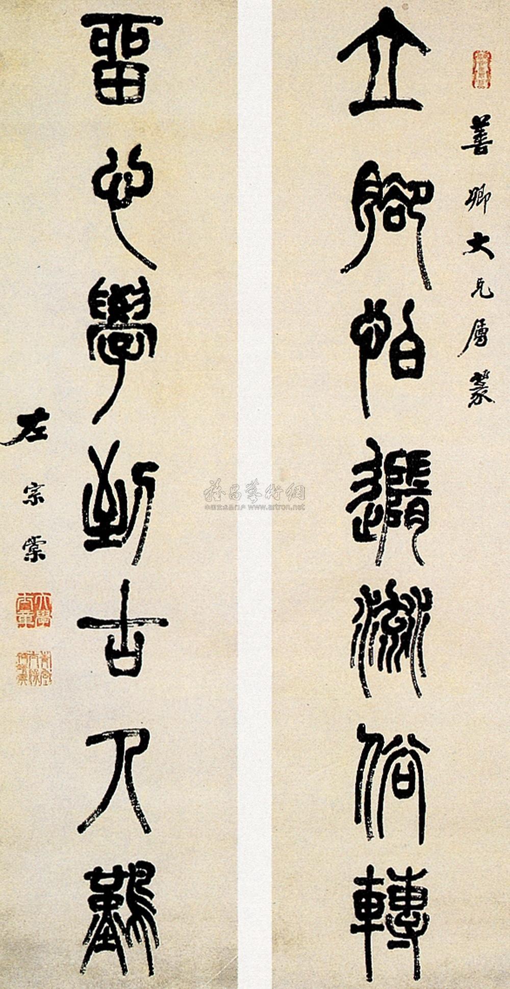 篆书七言联 立轴 纸本 |