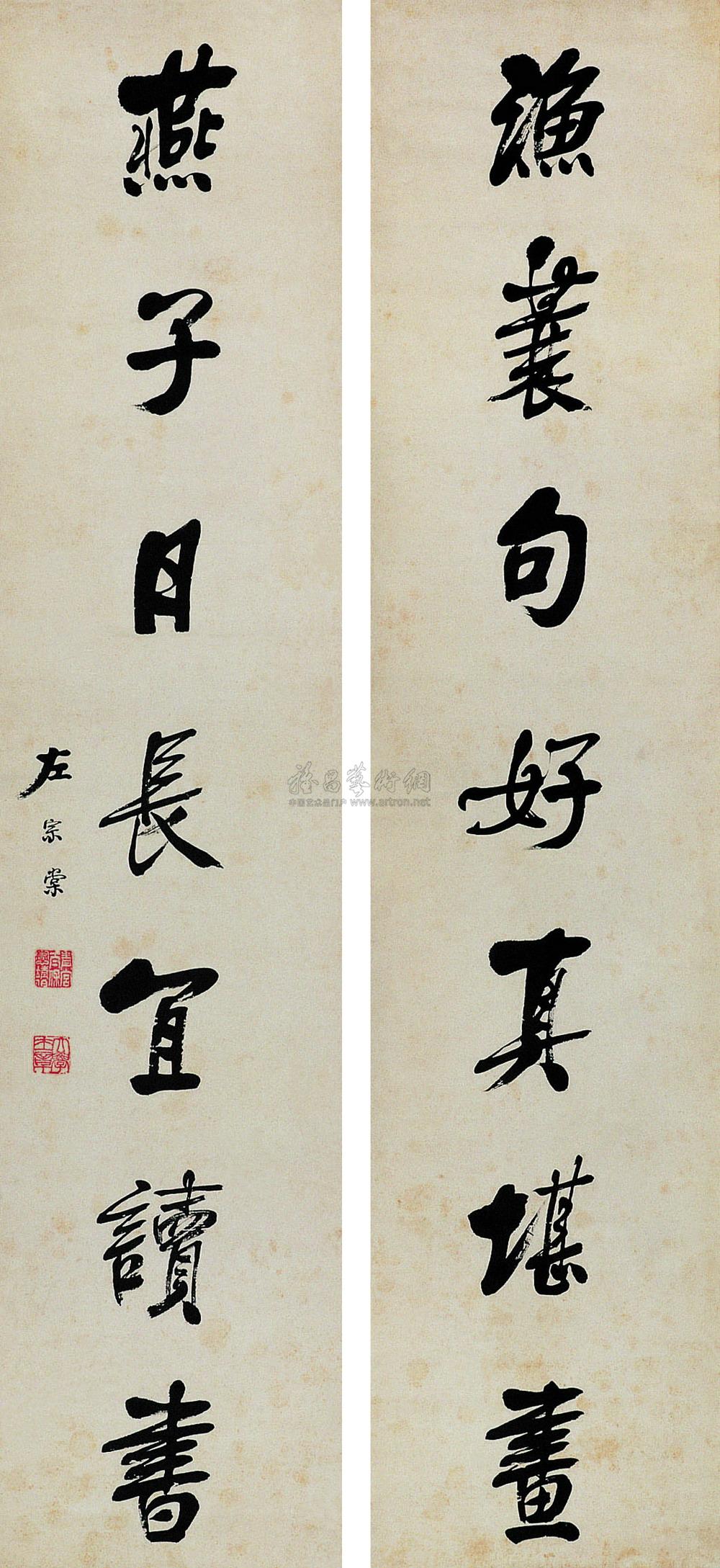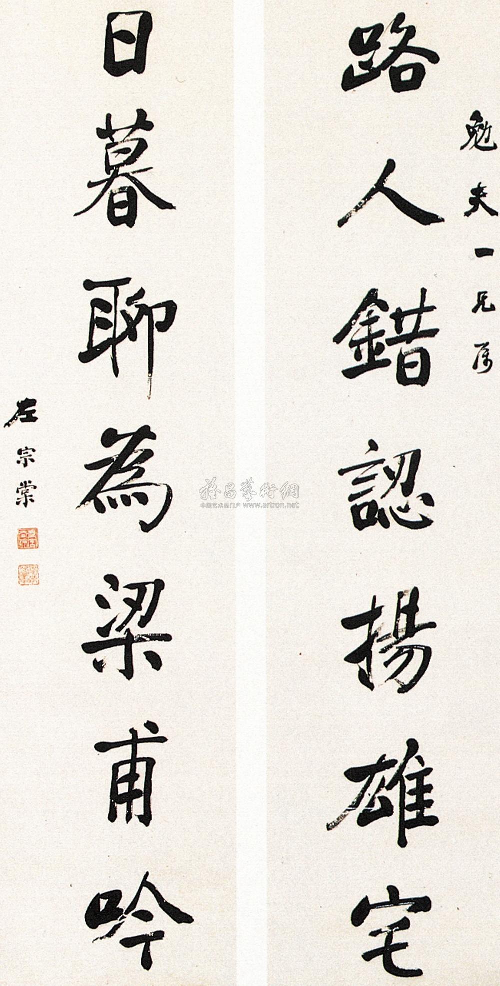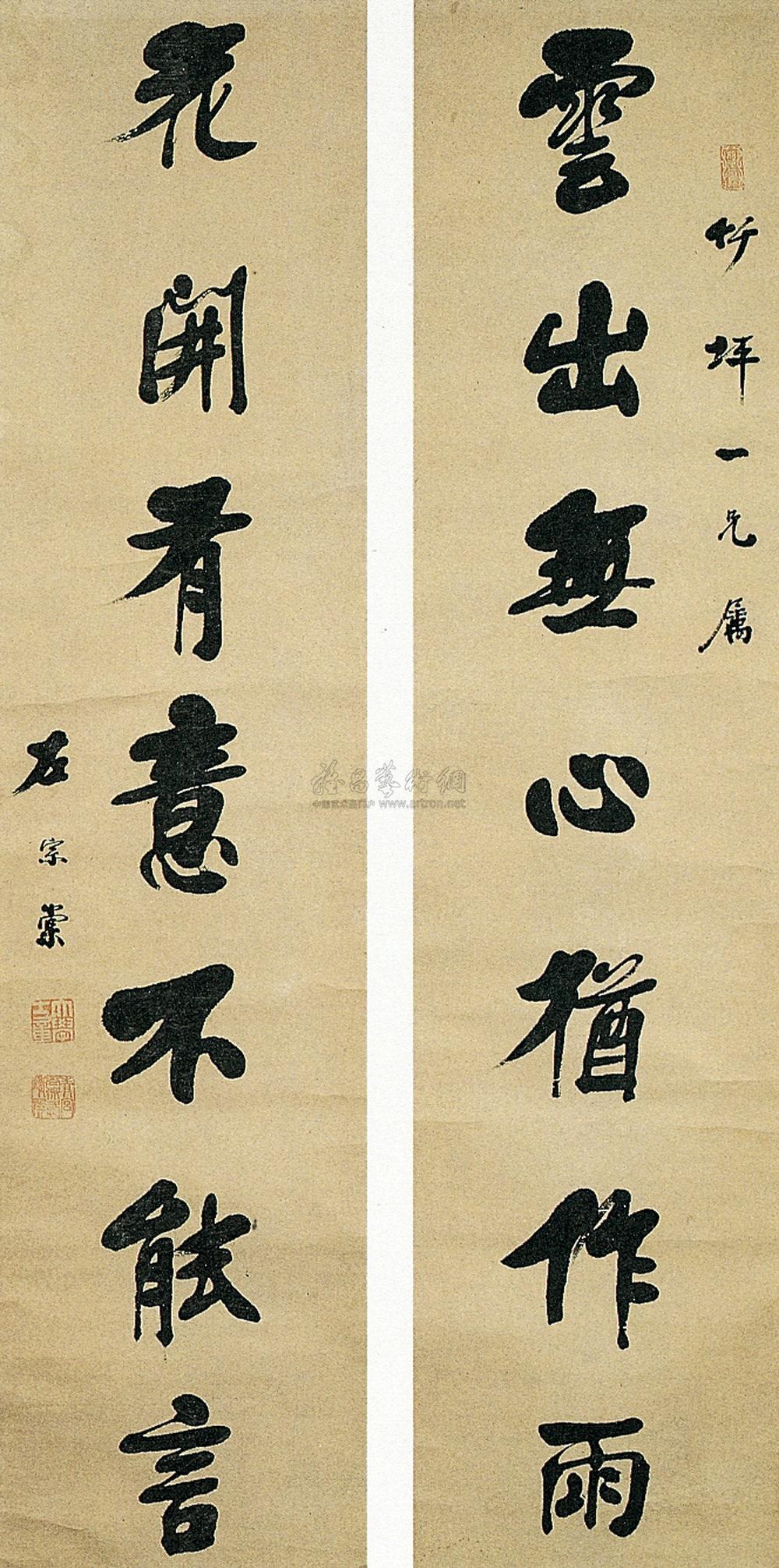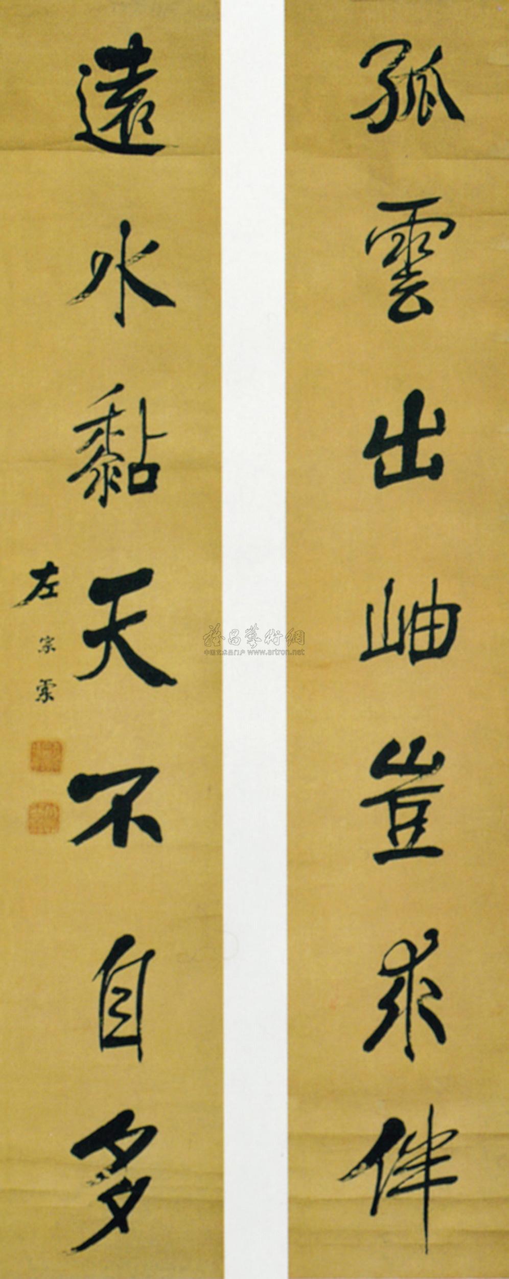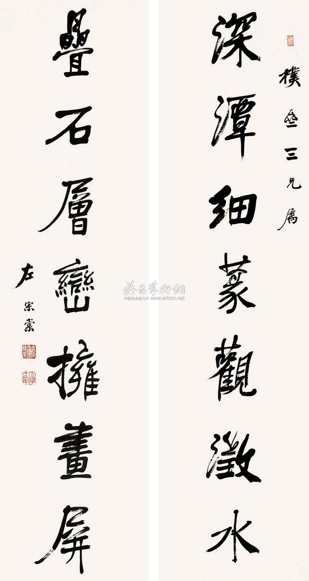 行书七言对联 立轴 水墨纸本 |