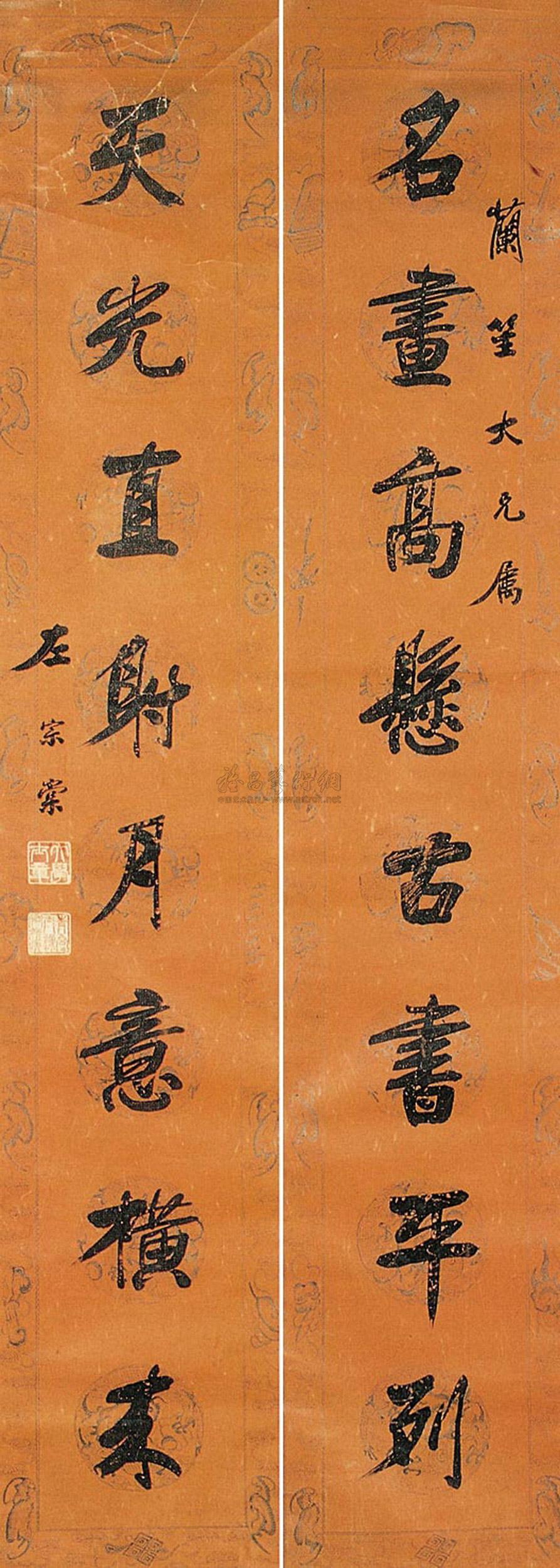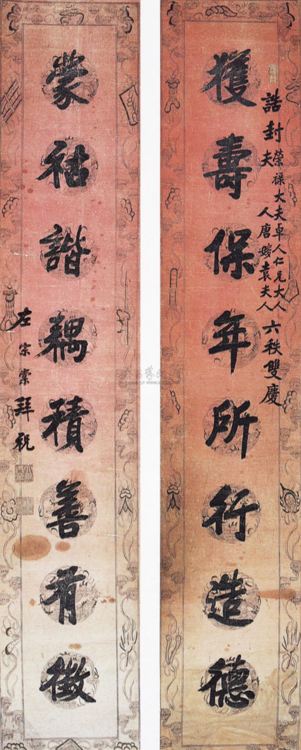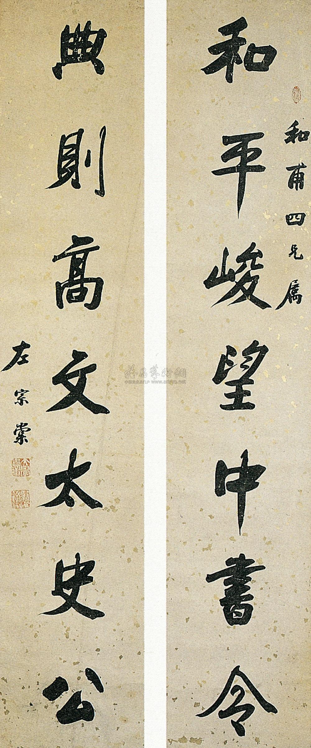 篆书 七言联 设色纸本 |