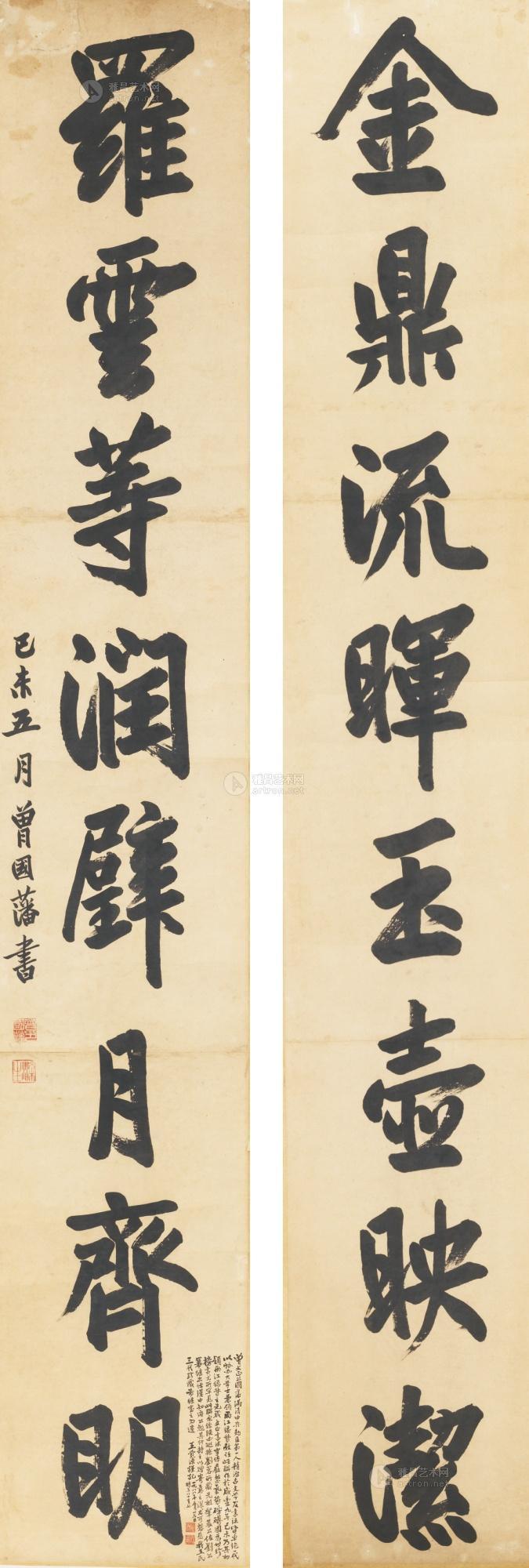 书法七言联 (二件) 屏轴 水墨纸本 |