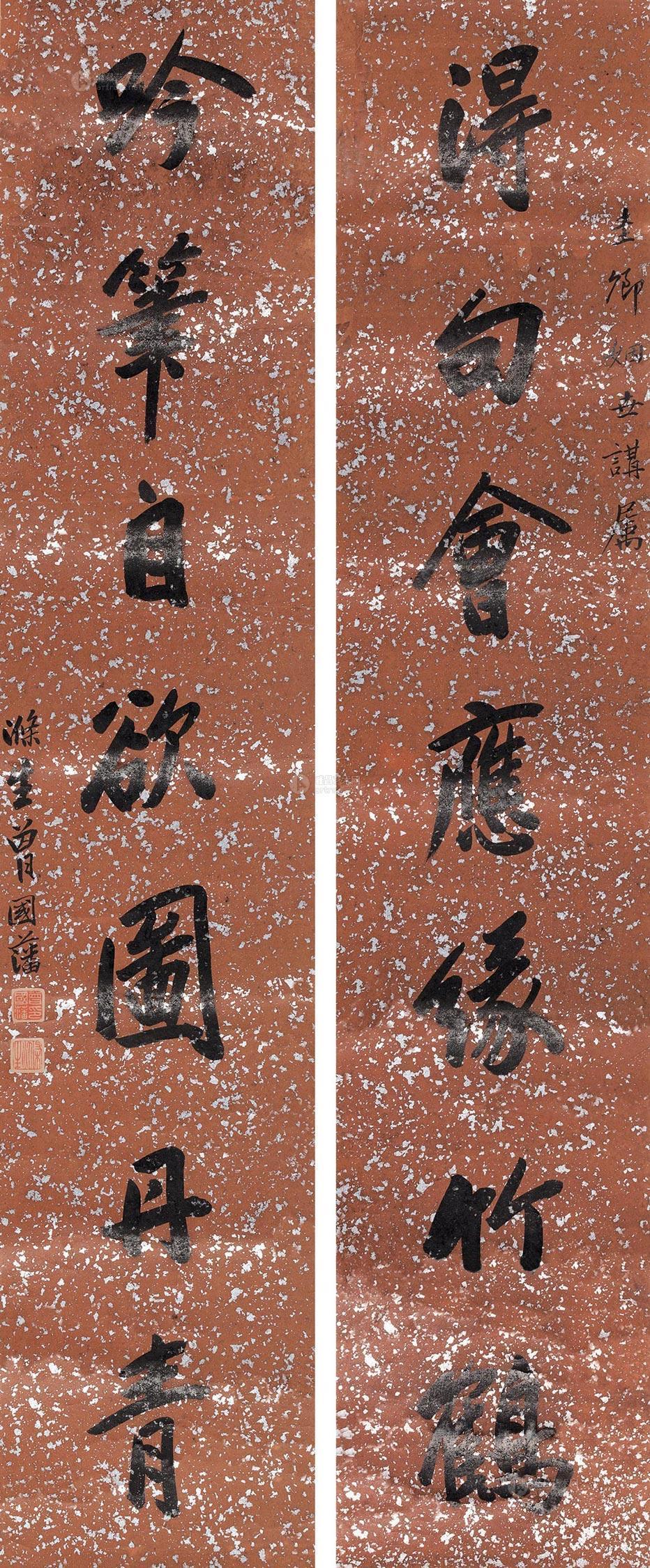 行书七言联 (二幅) 镜片 水墨笺本 |