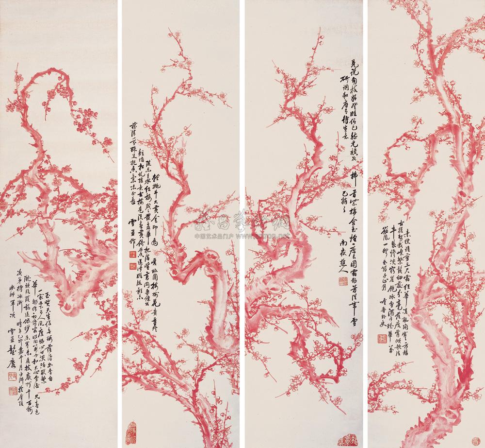 梅花 四屏 朱墨纸本 |