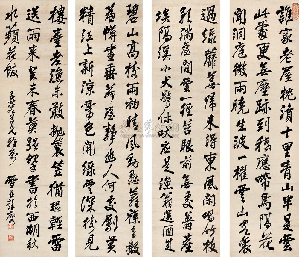 行书 四屏 水墨纸本 |