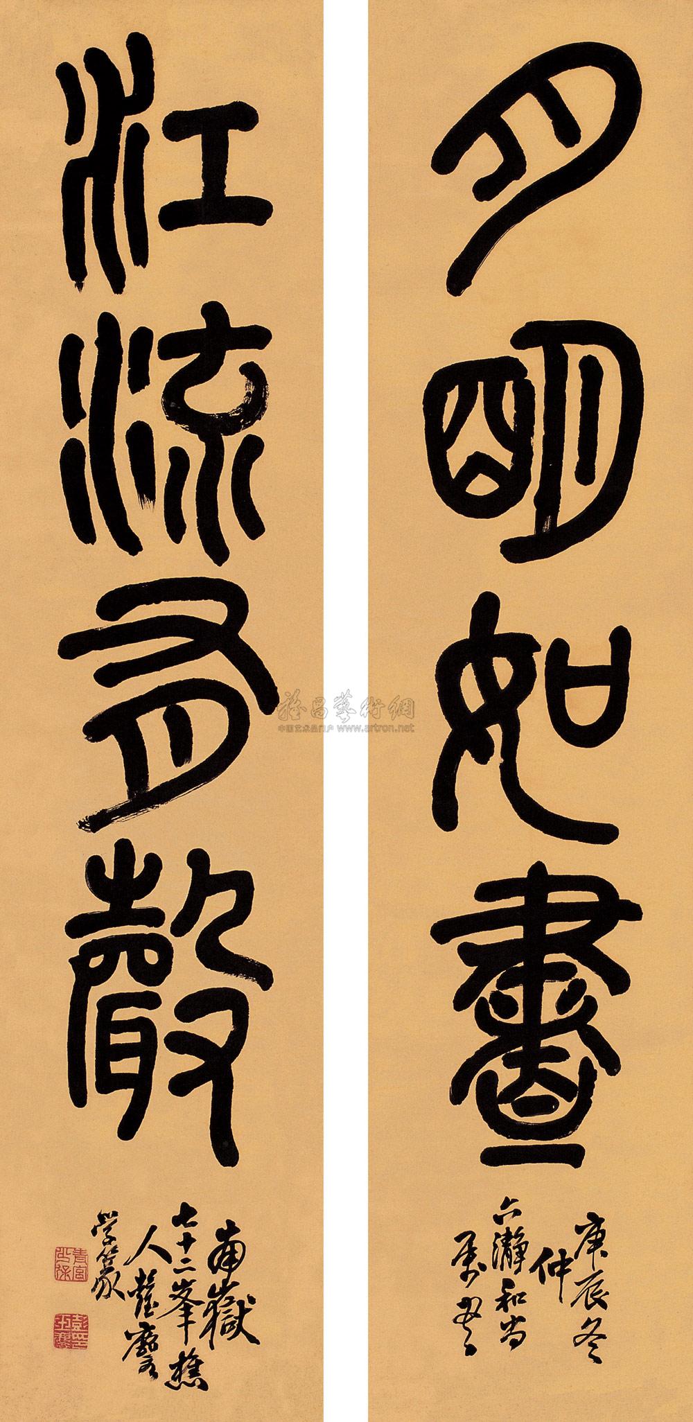 篆书四言 对联 纸本 |
