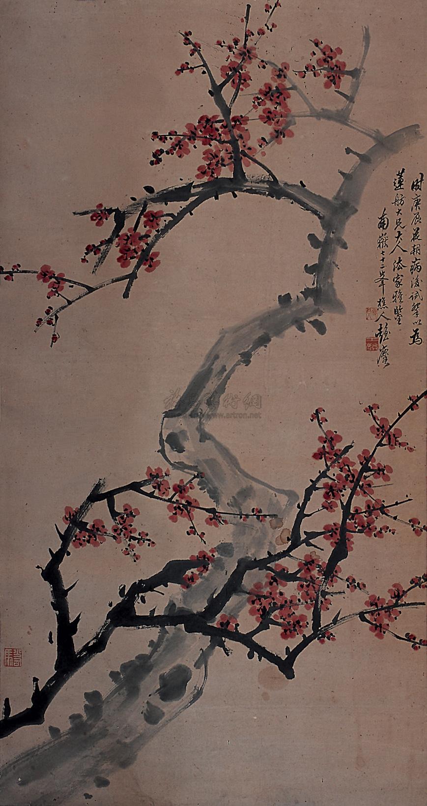 红梅 立轴 设色纸本 |