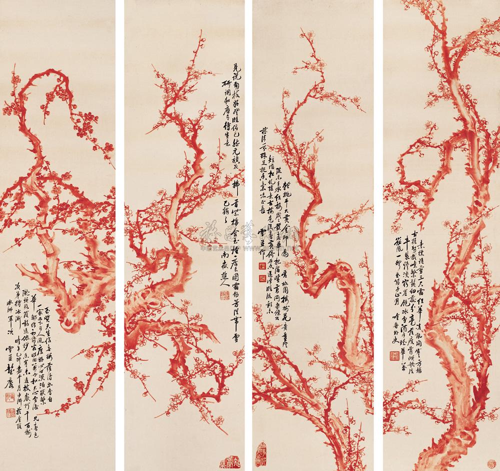 梅花 四屏 设色纸本 |