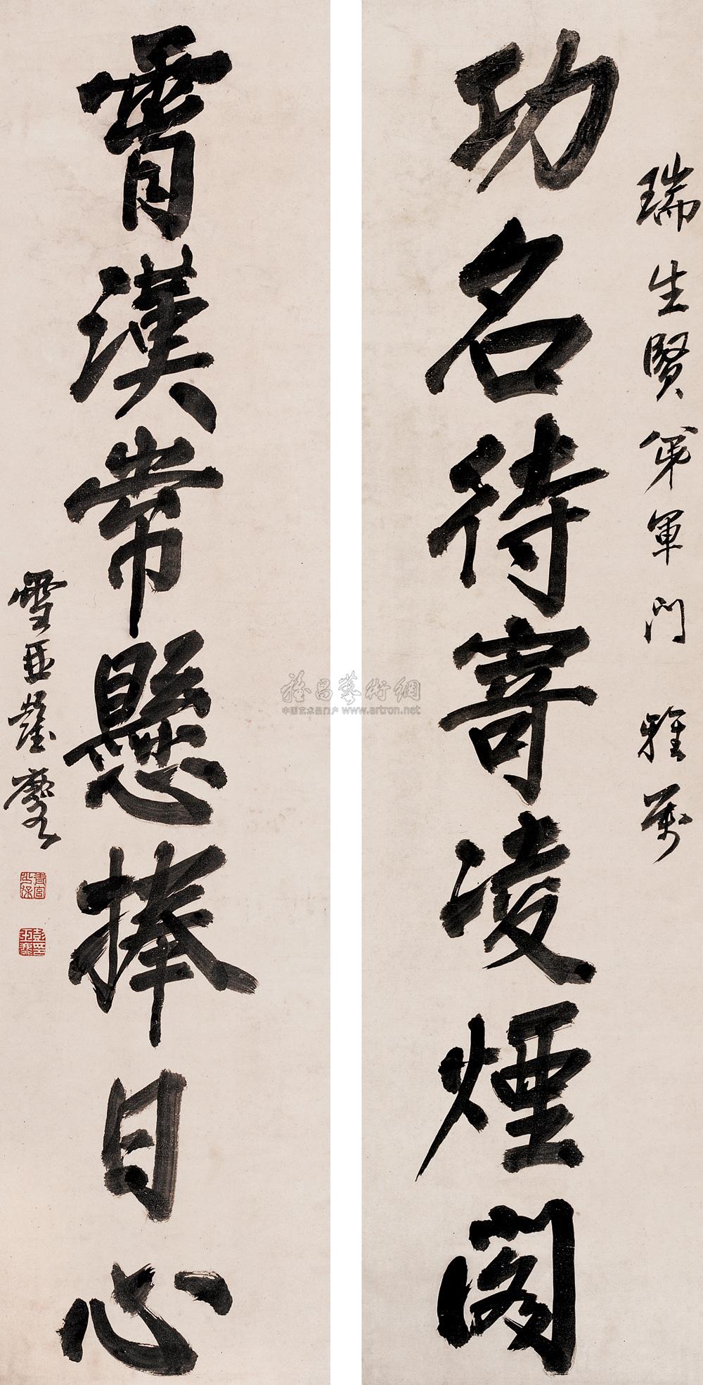 七言行书 对联 水墨纸本 |