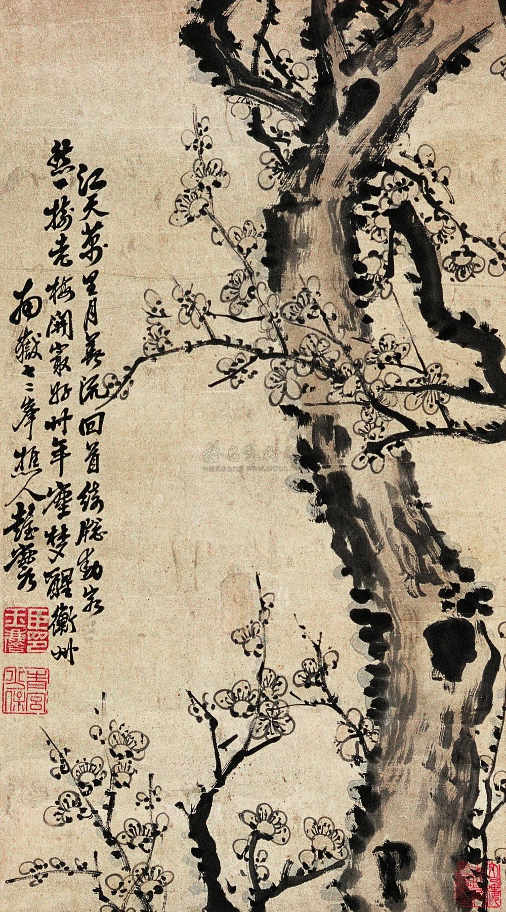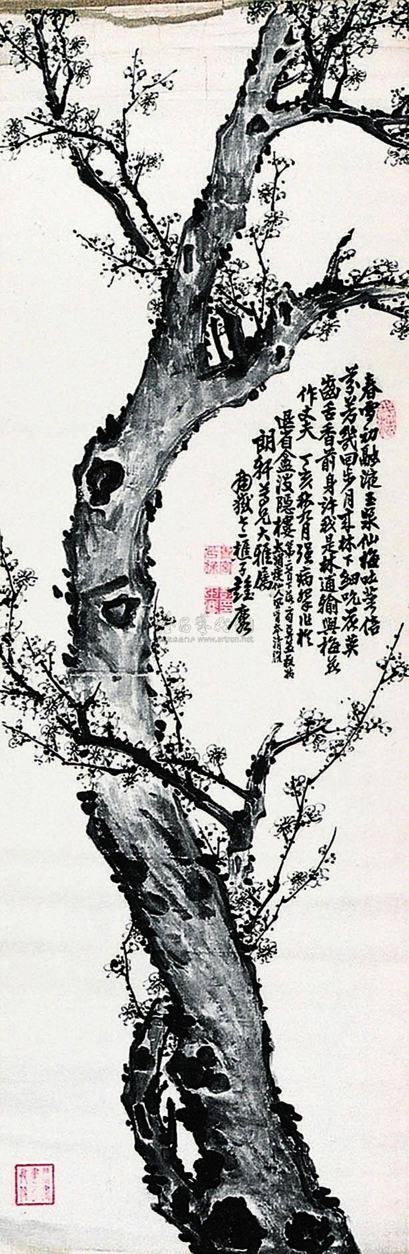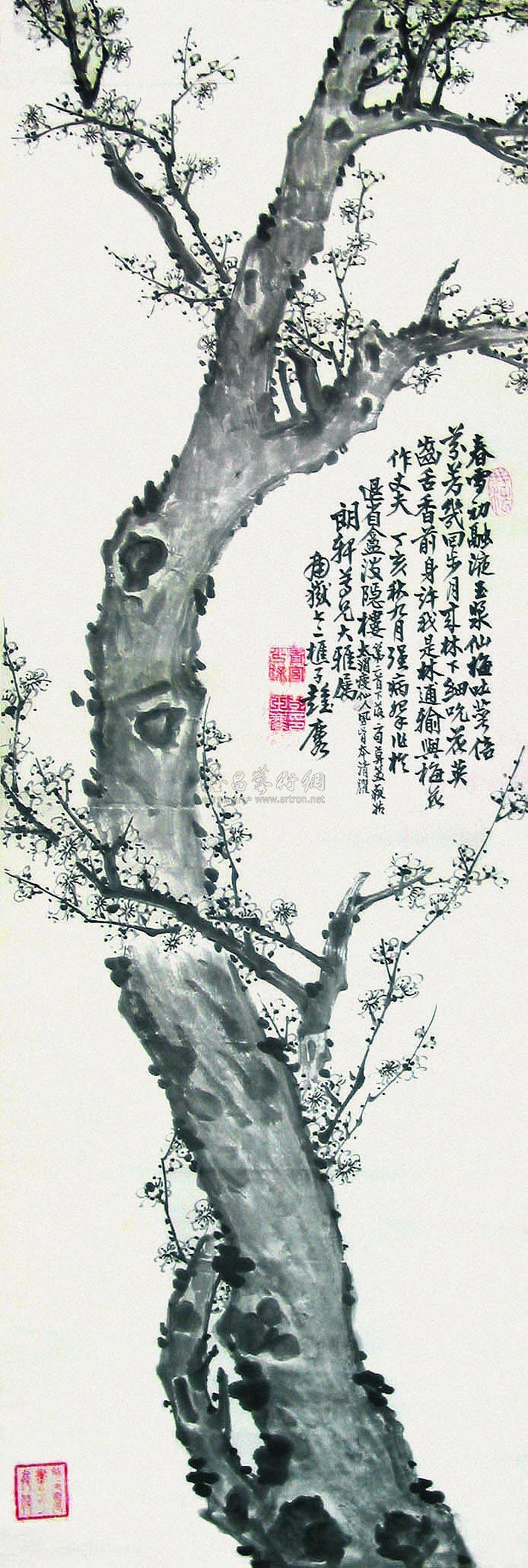 雪梅通景 (四屏) 立轴 水墨纸本 |