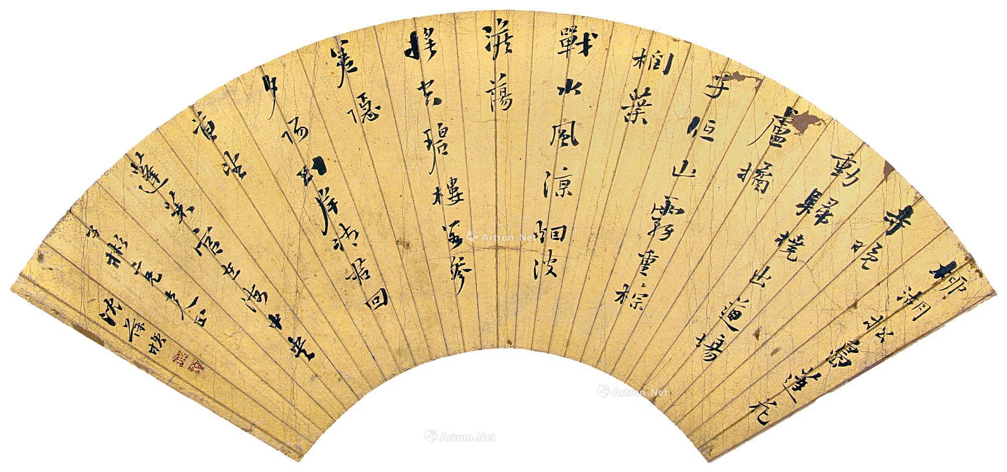 行书“西湖晚归” 扇片 水墨泥金笺 |