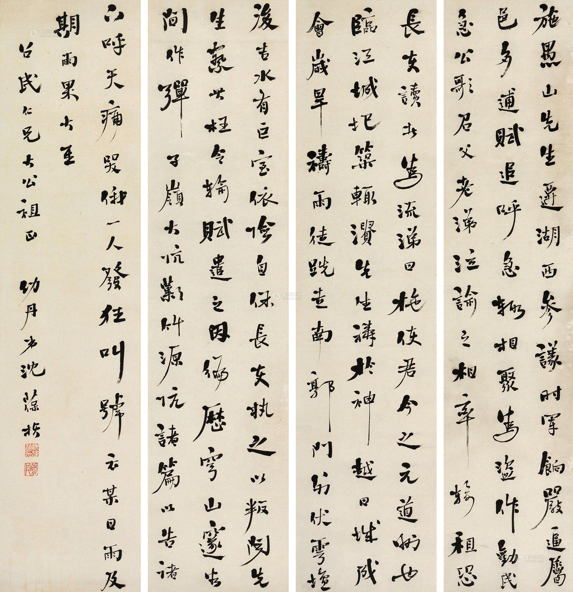 行书东坡题跋 四屏立轴 水墨纸本 |
