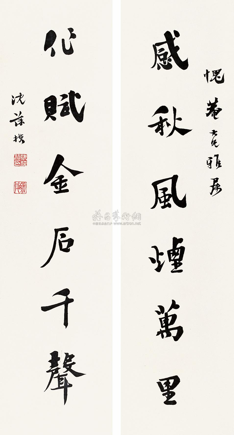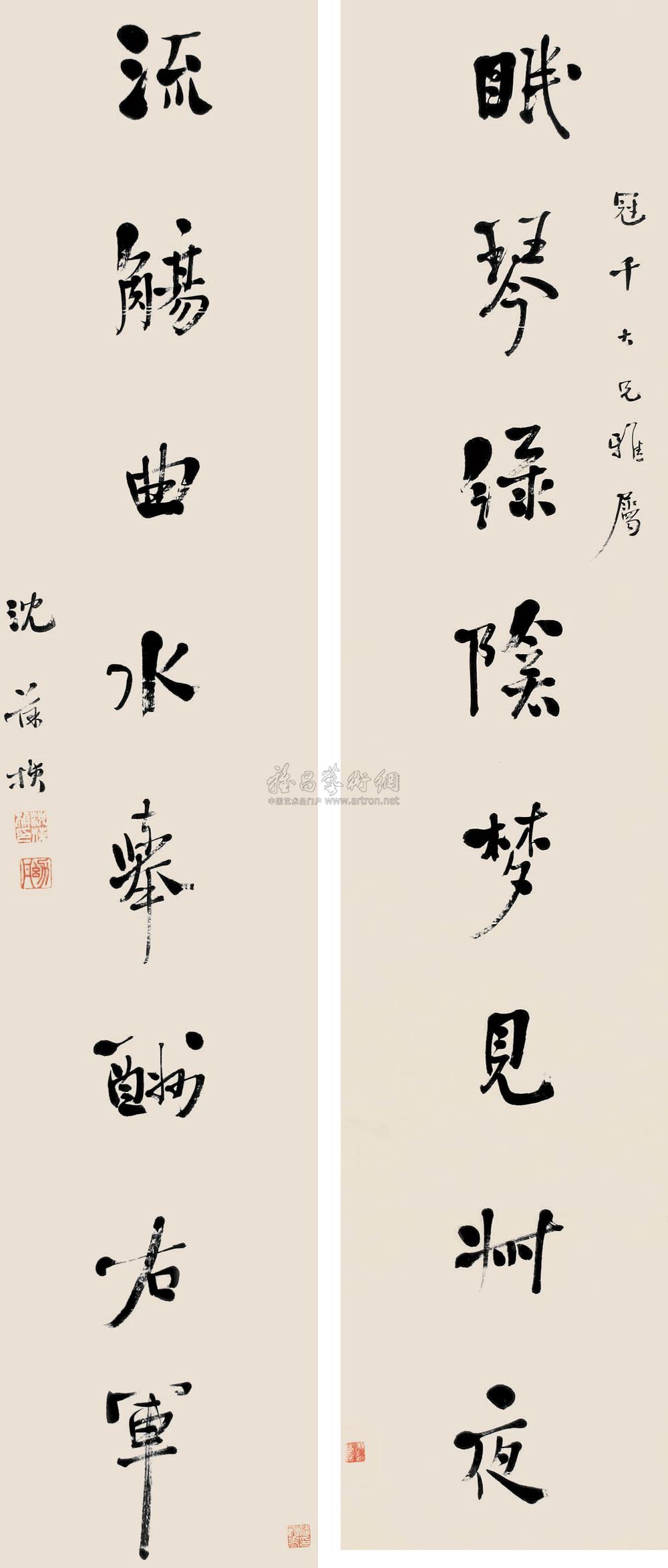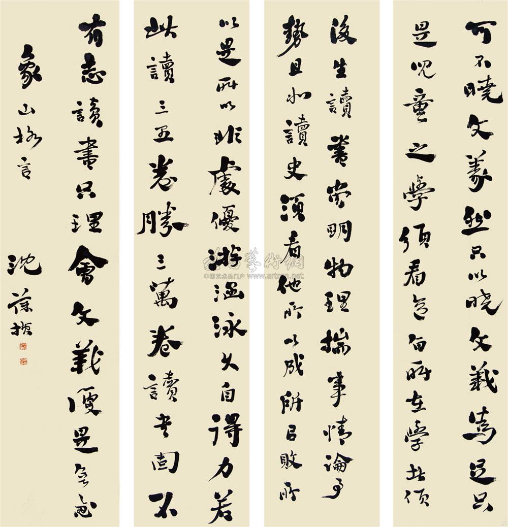行书八言联 屏轴 水墨纸本 |