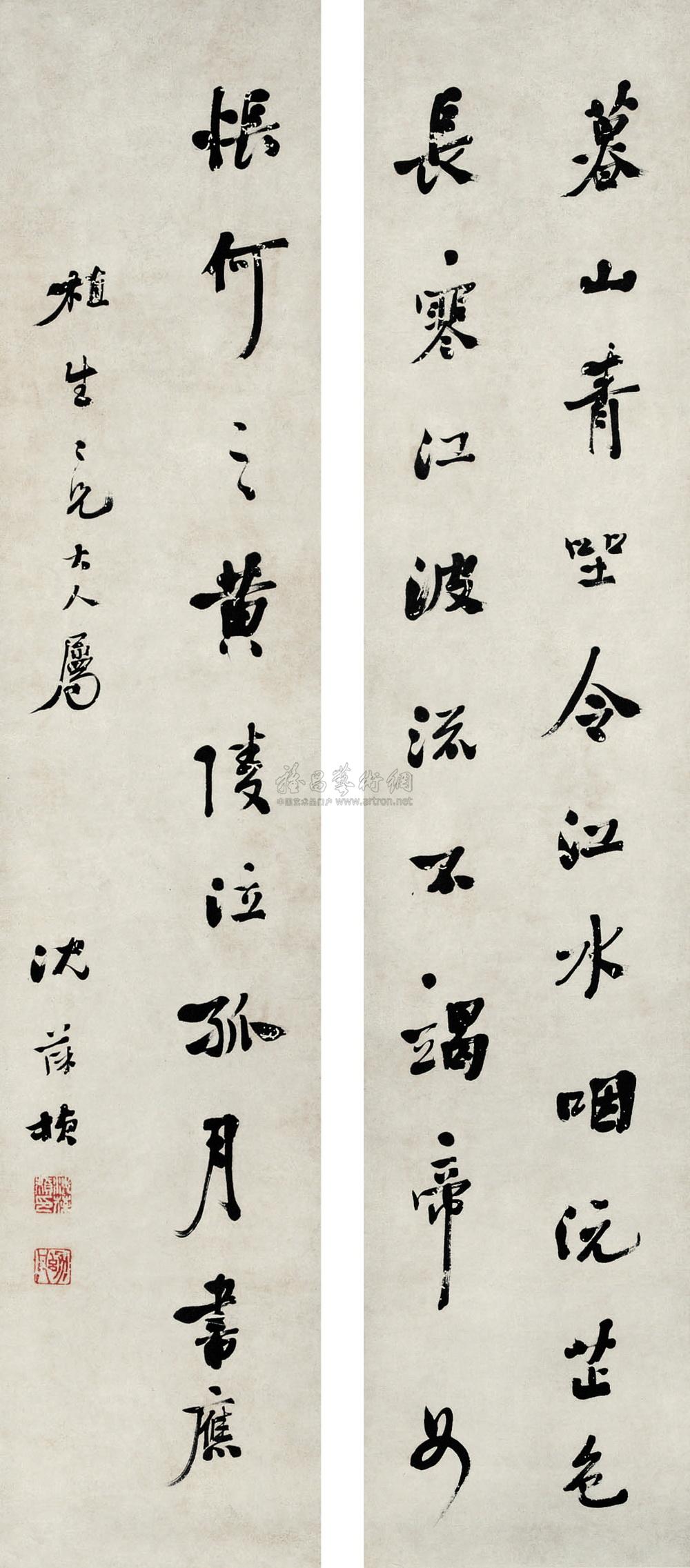 行书七言联 对联 水墨纸本 |