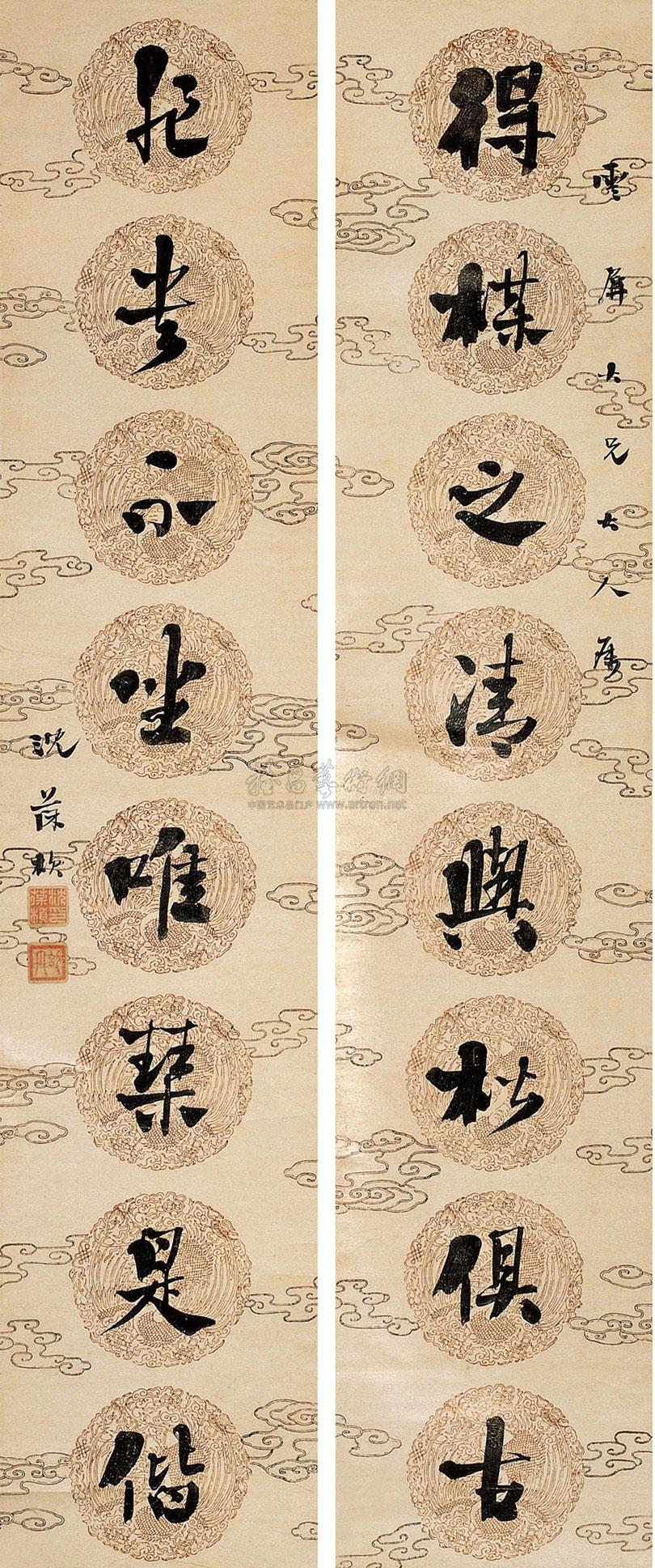 行书八言联 字对 水墨纸本 |