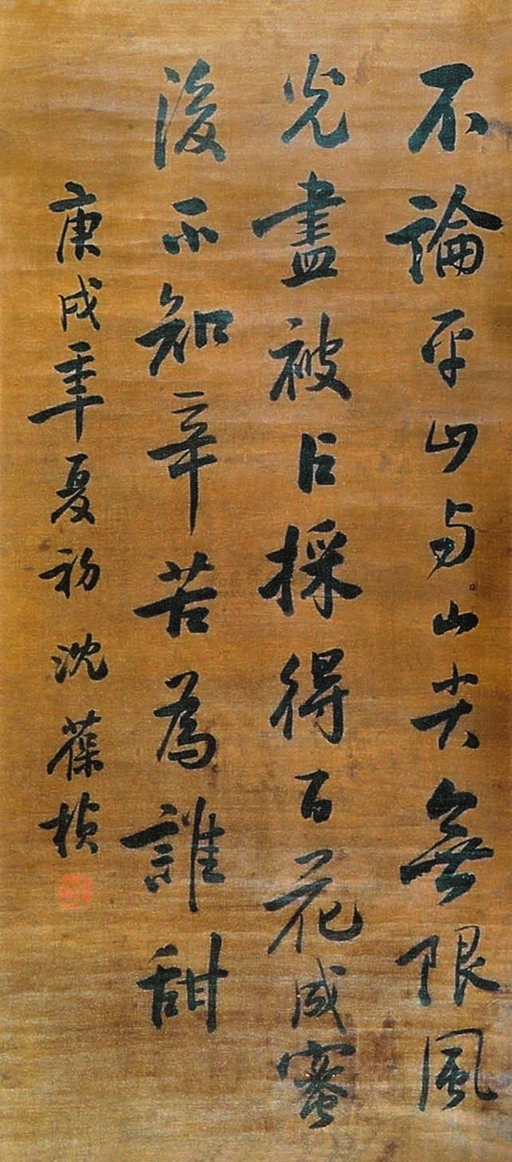 行书七言联 立轴 水墨金笺 |