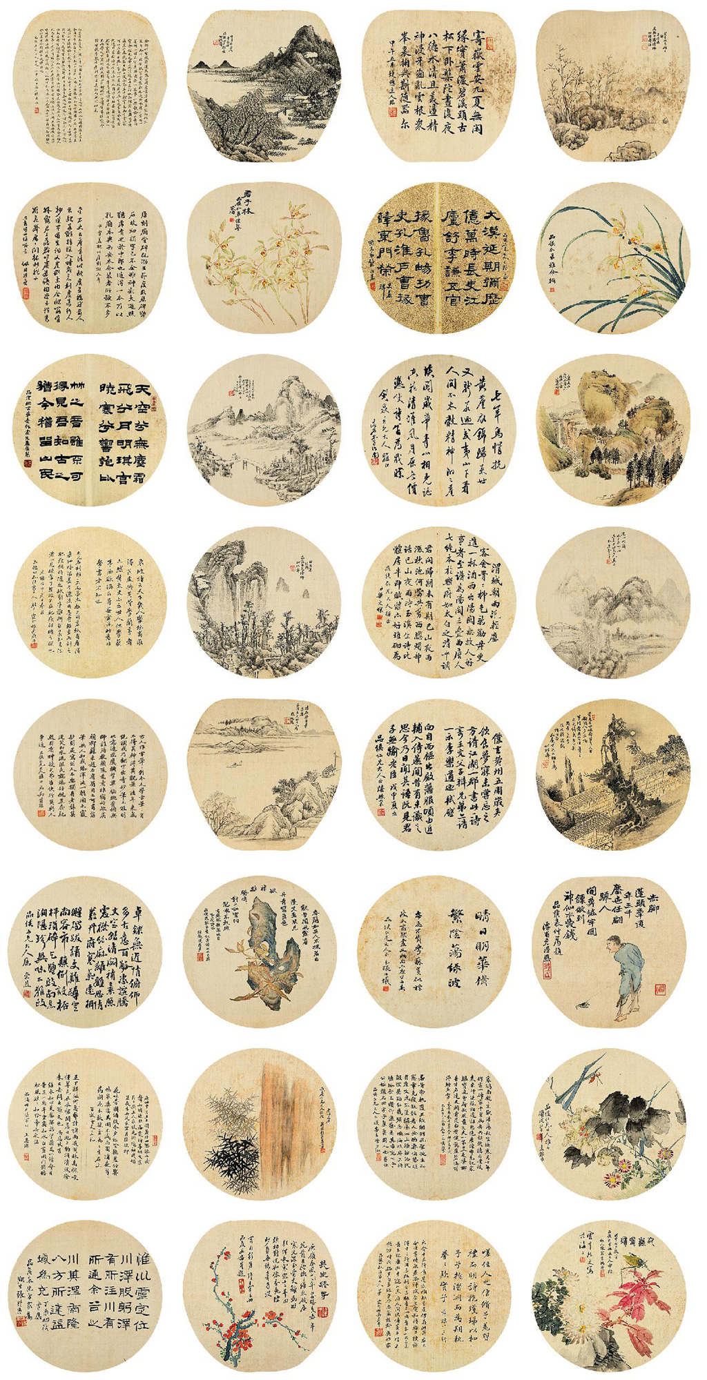 书画合璧册 册页 (三十七开选三十三) 设色、水墨绢本 |