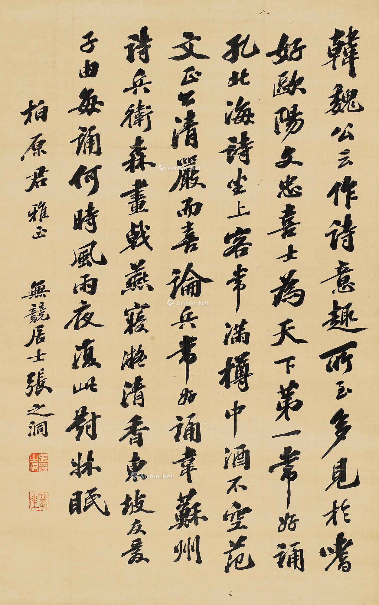 行书七言诗 立轴 金笺 |