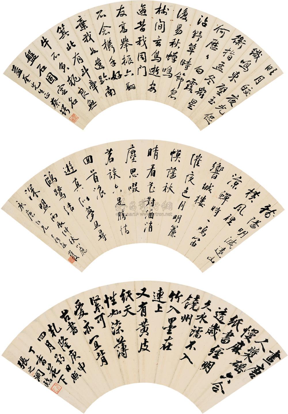 行书 扇面 (三开) 水墨纸本 |