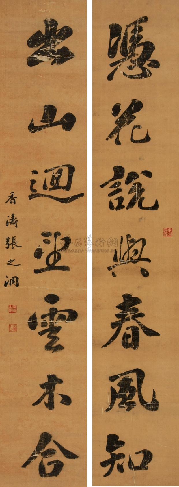 书法对联 立轴 绢本 |