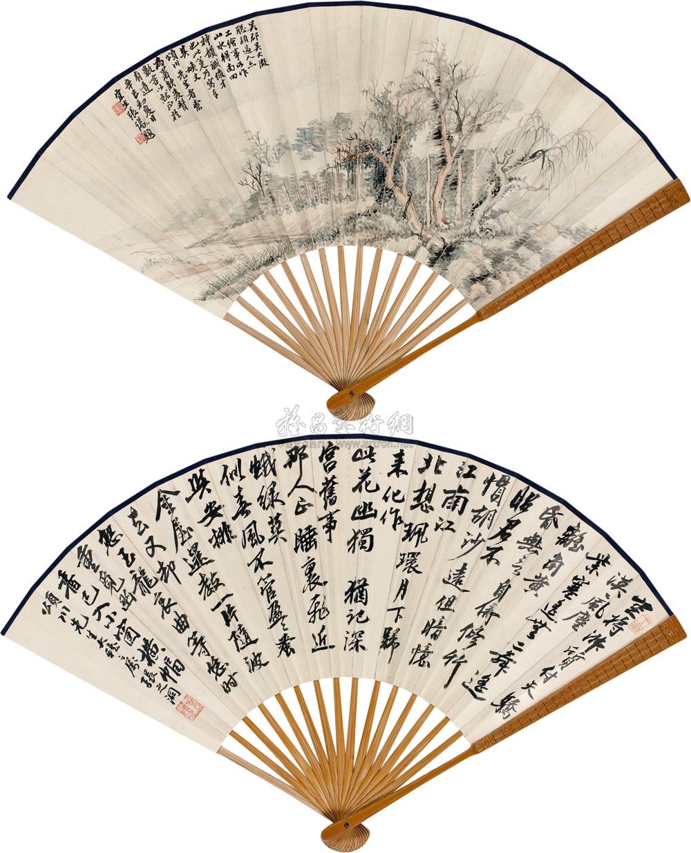 山水书法 成扇 设色纸本 |