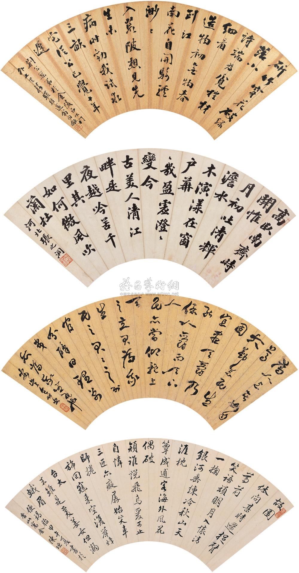 书法 (四件) 扇面片 纸本 |
