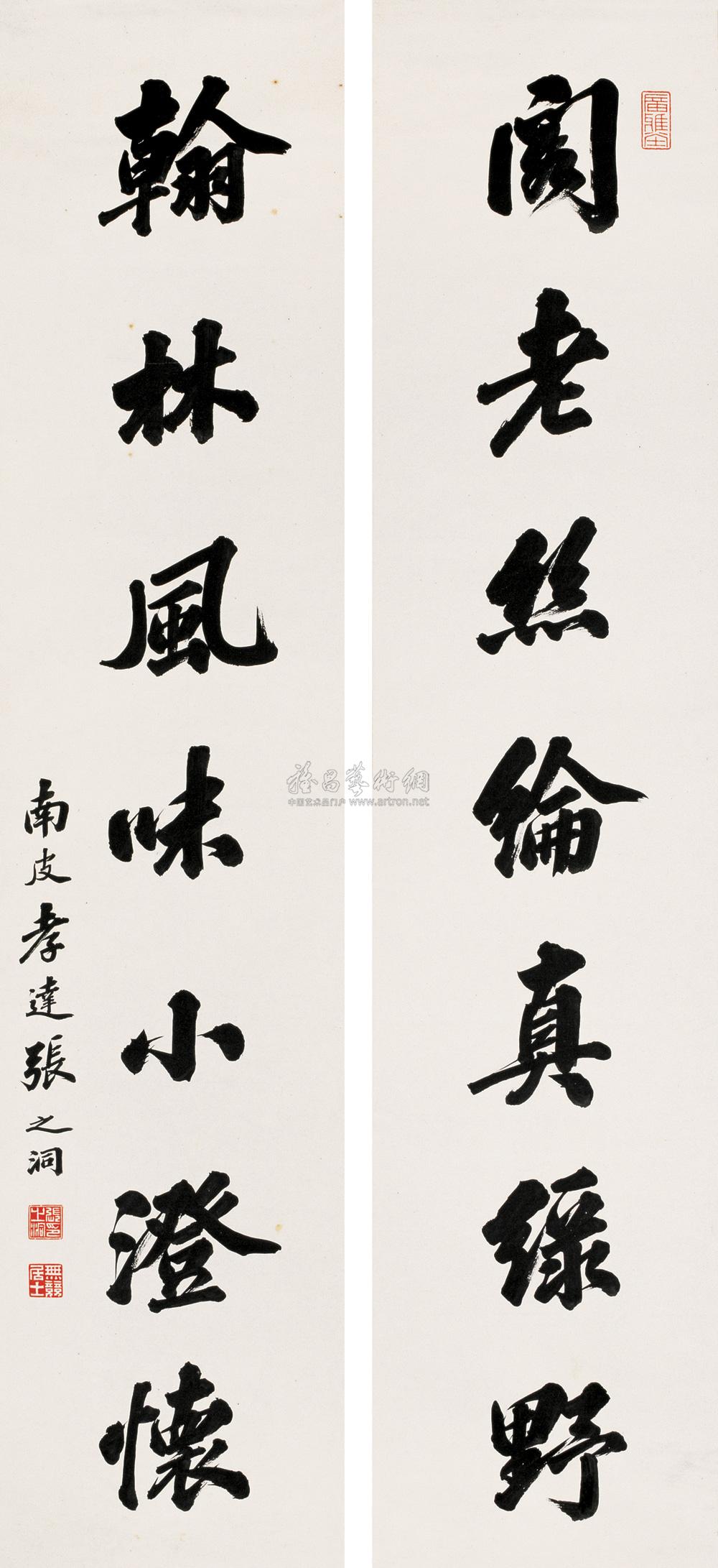 行书七言联 字对 水墨纸本 |