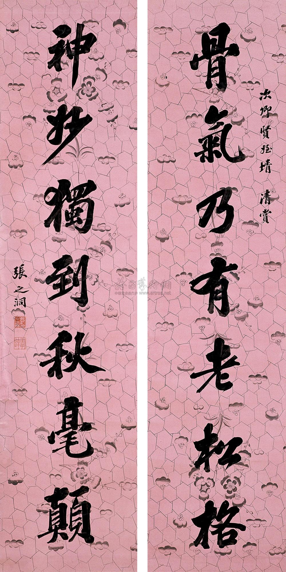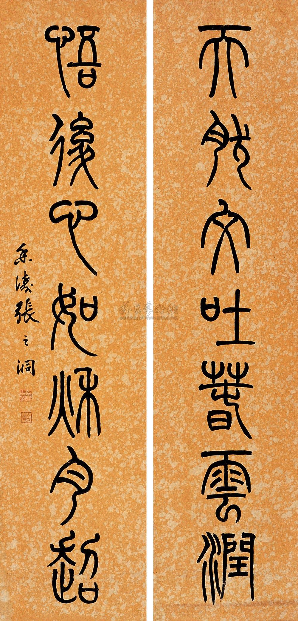 篆书七言对联 立轴 水墨纸本 |