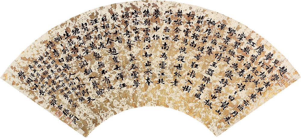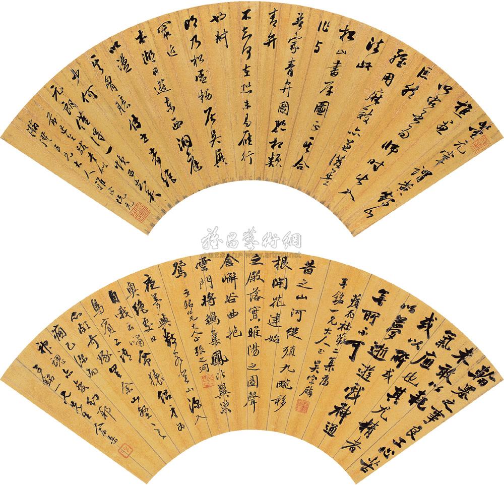 行书四家诗文 (二幅) 扇面 泥金纸本 |