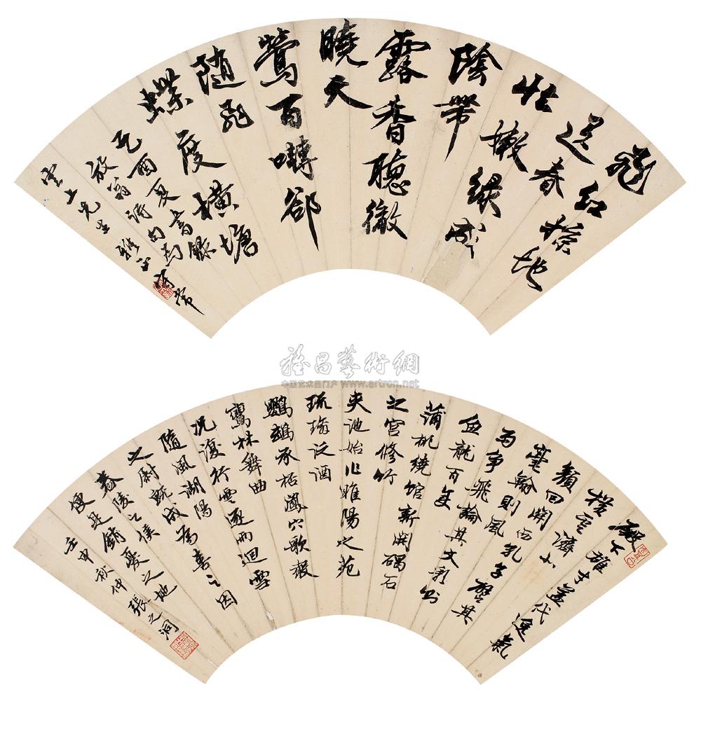 云山小溪 书法 (两幅) 扇面镜心 水墨纸本 |