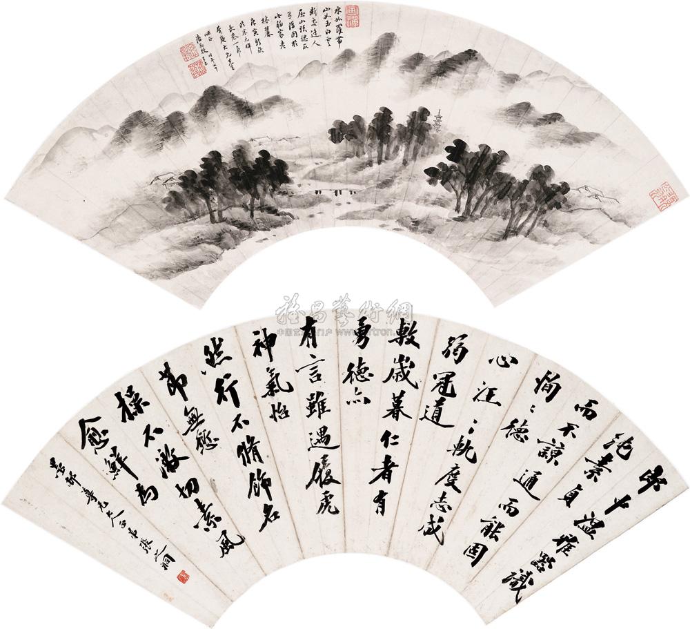 山水 书法 成扇 水墨纸本 |