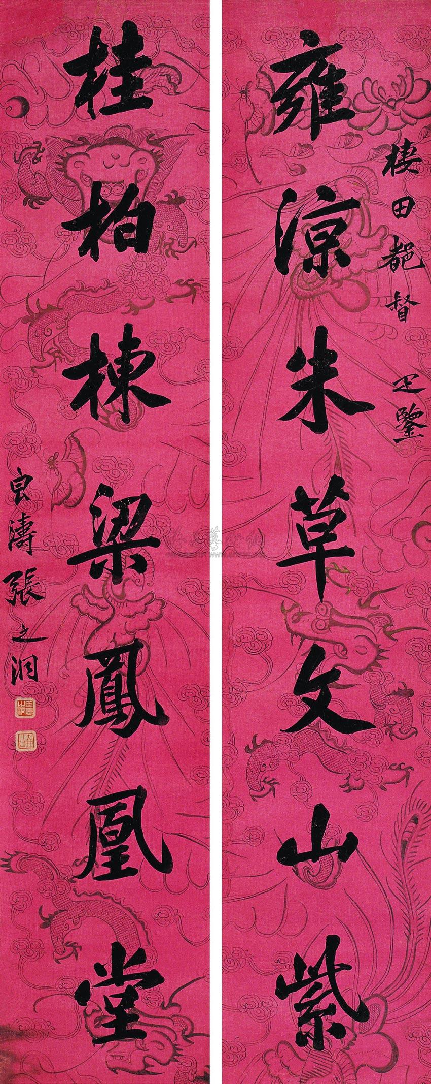 行书七言联 镜心 描金龙凤纹笺 |
