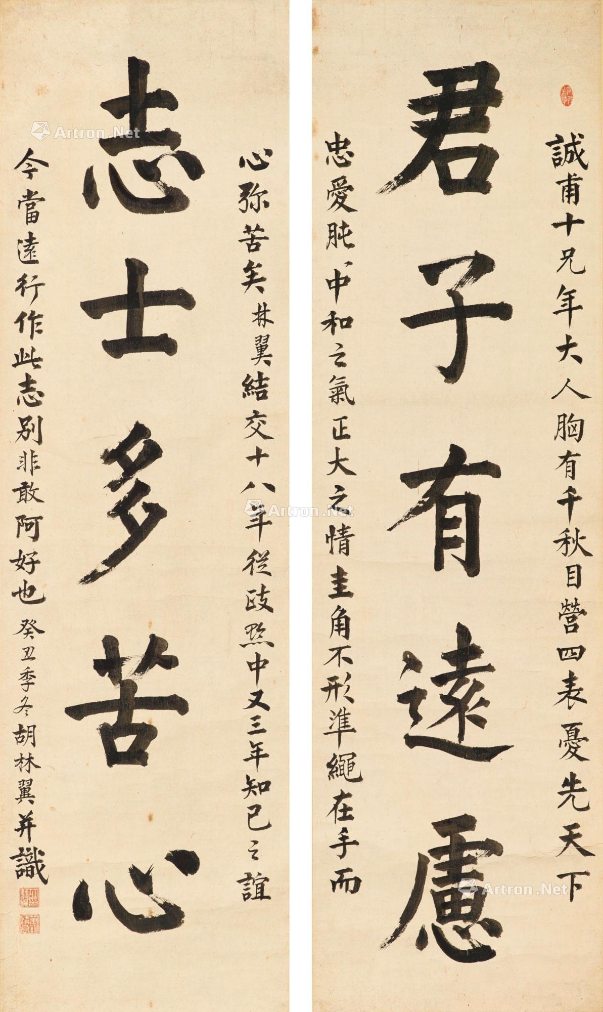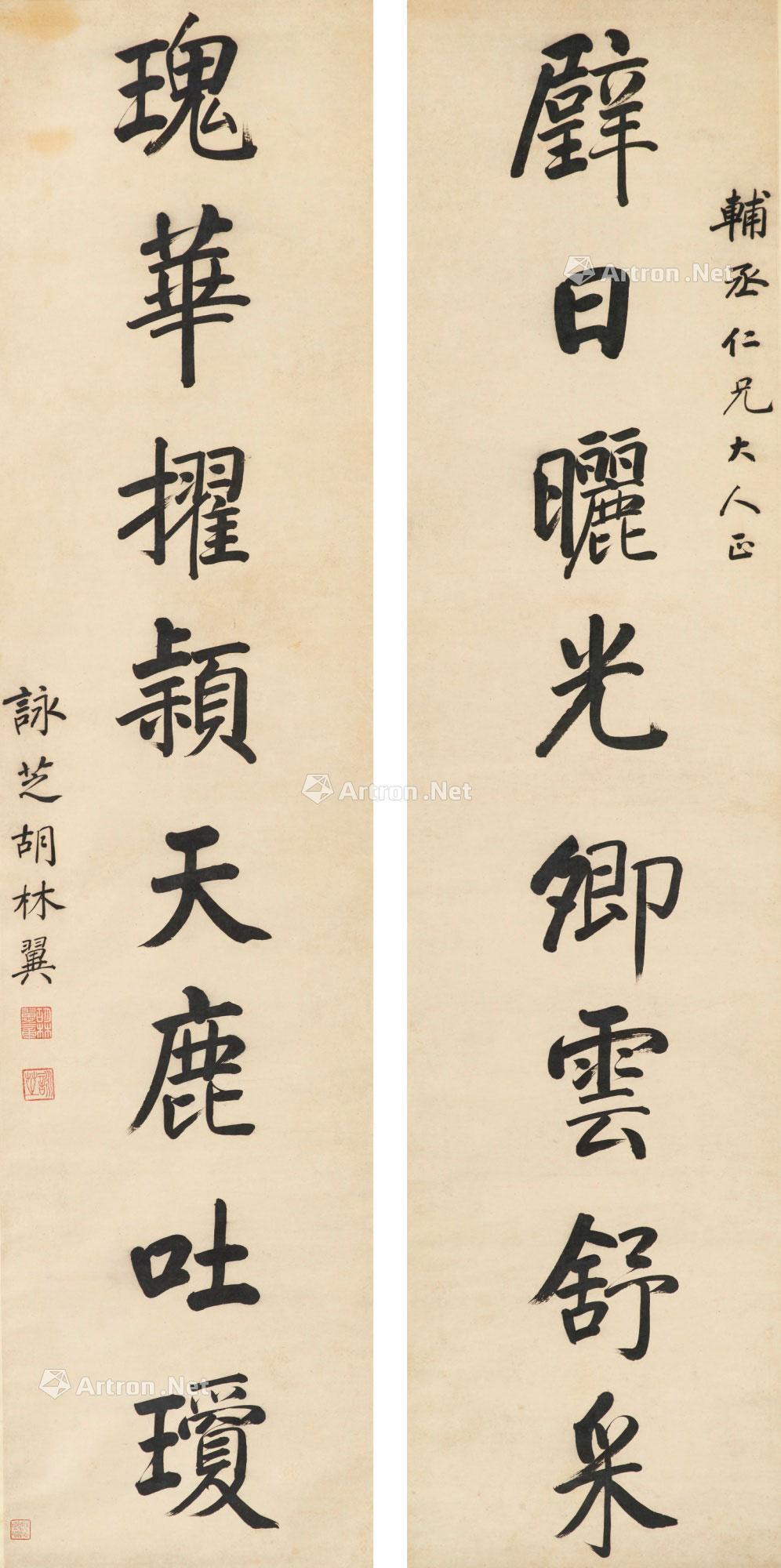 楷书七言联 (二件) 镜片 水墨纸本 |