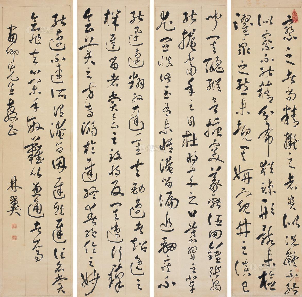 草书 临书谱 四屏 纸本 |