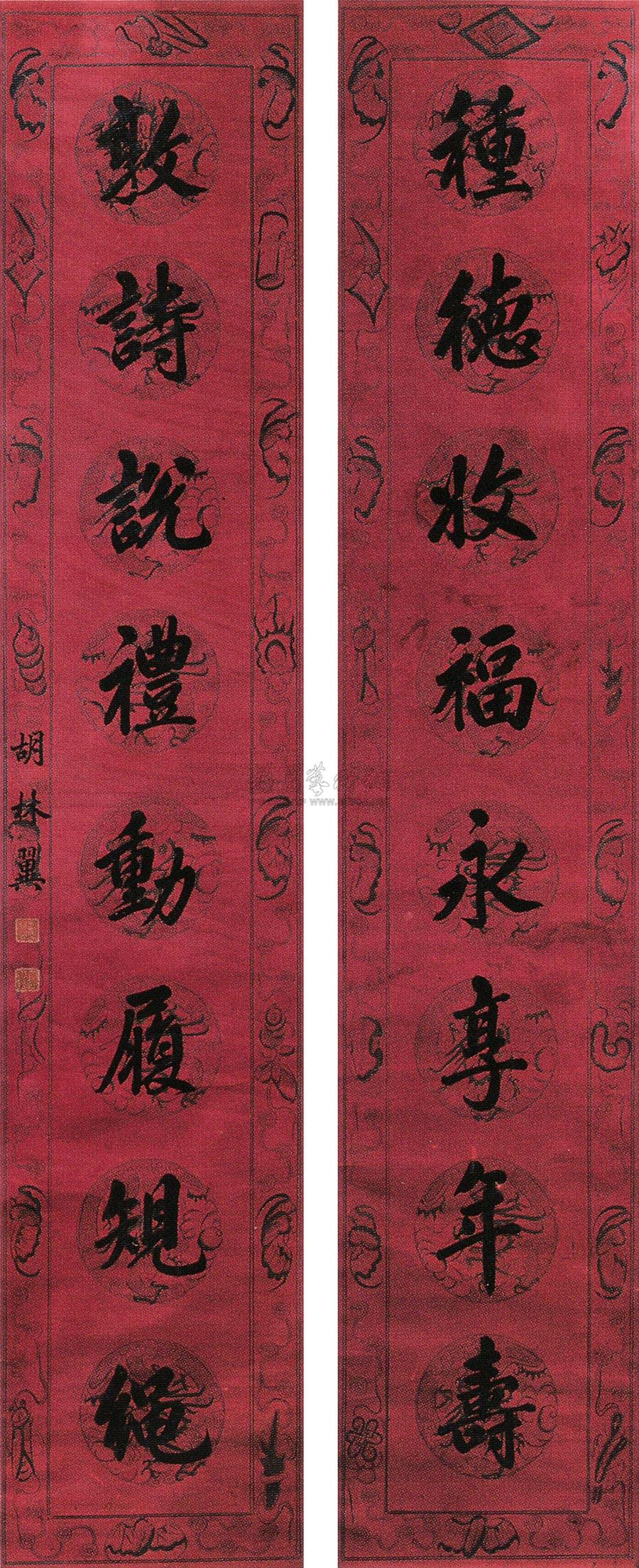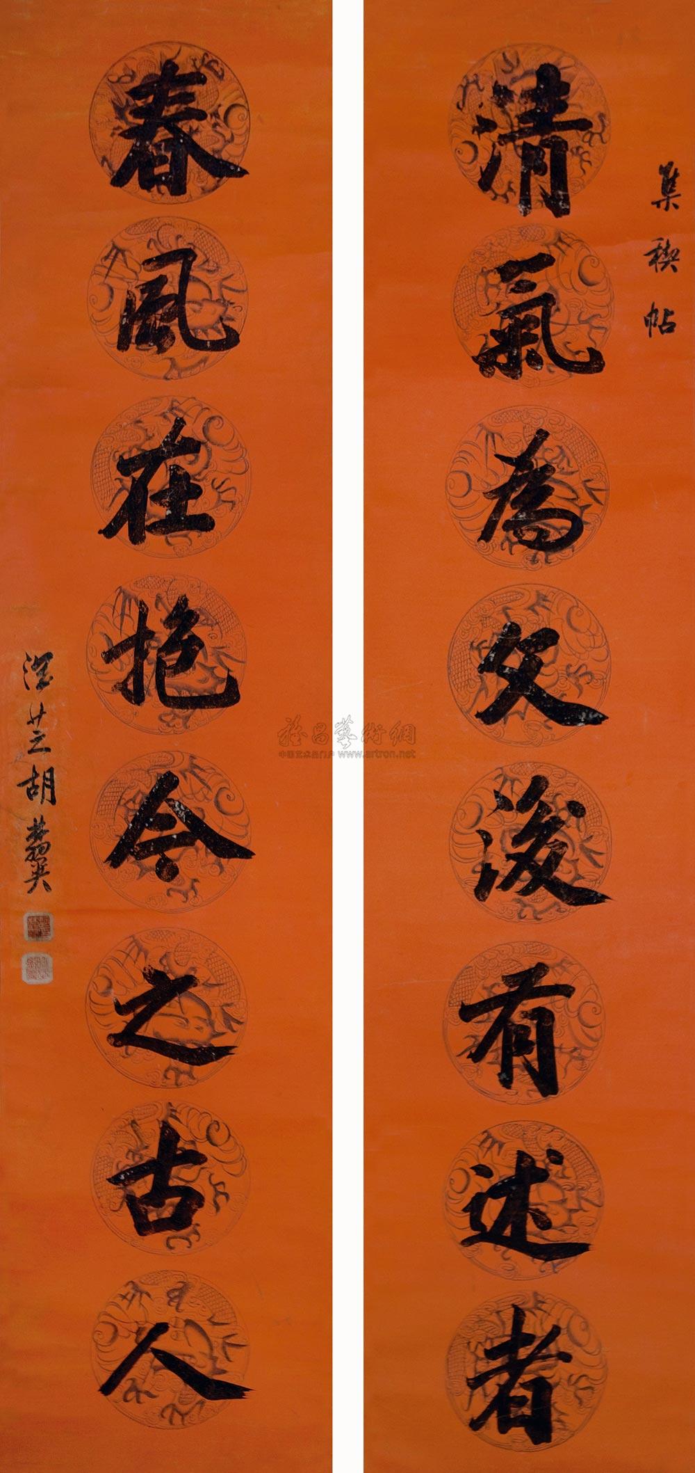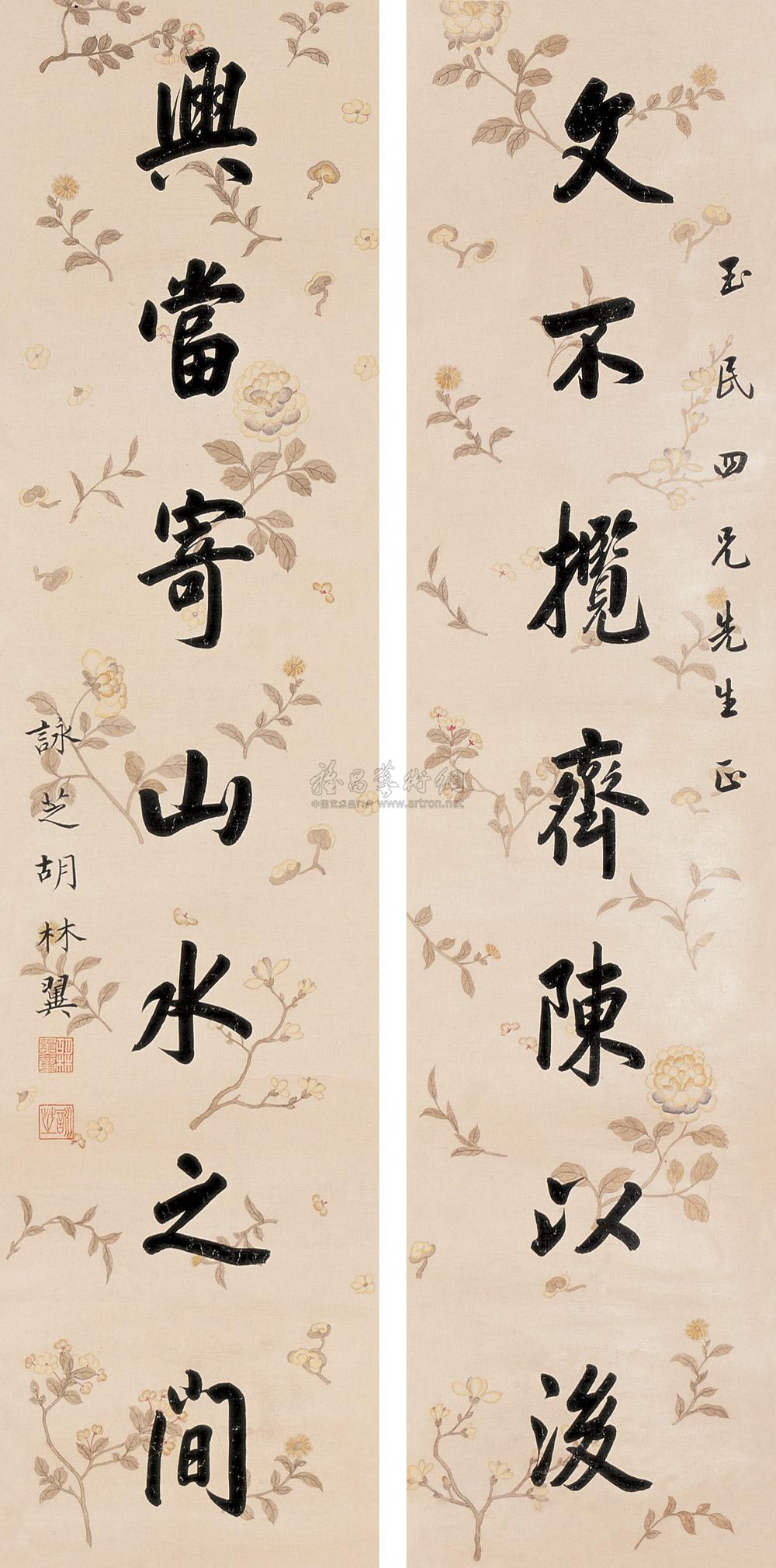 书法对联 立轴 水墨色菚 |